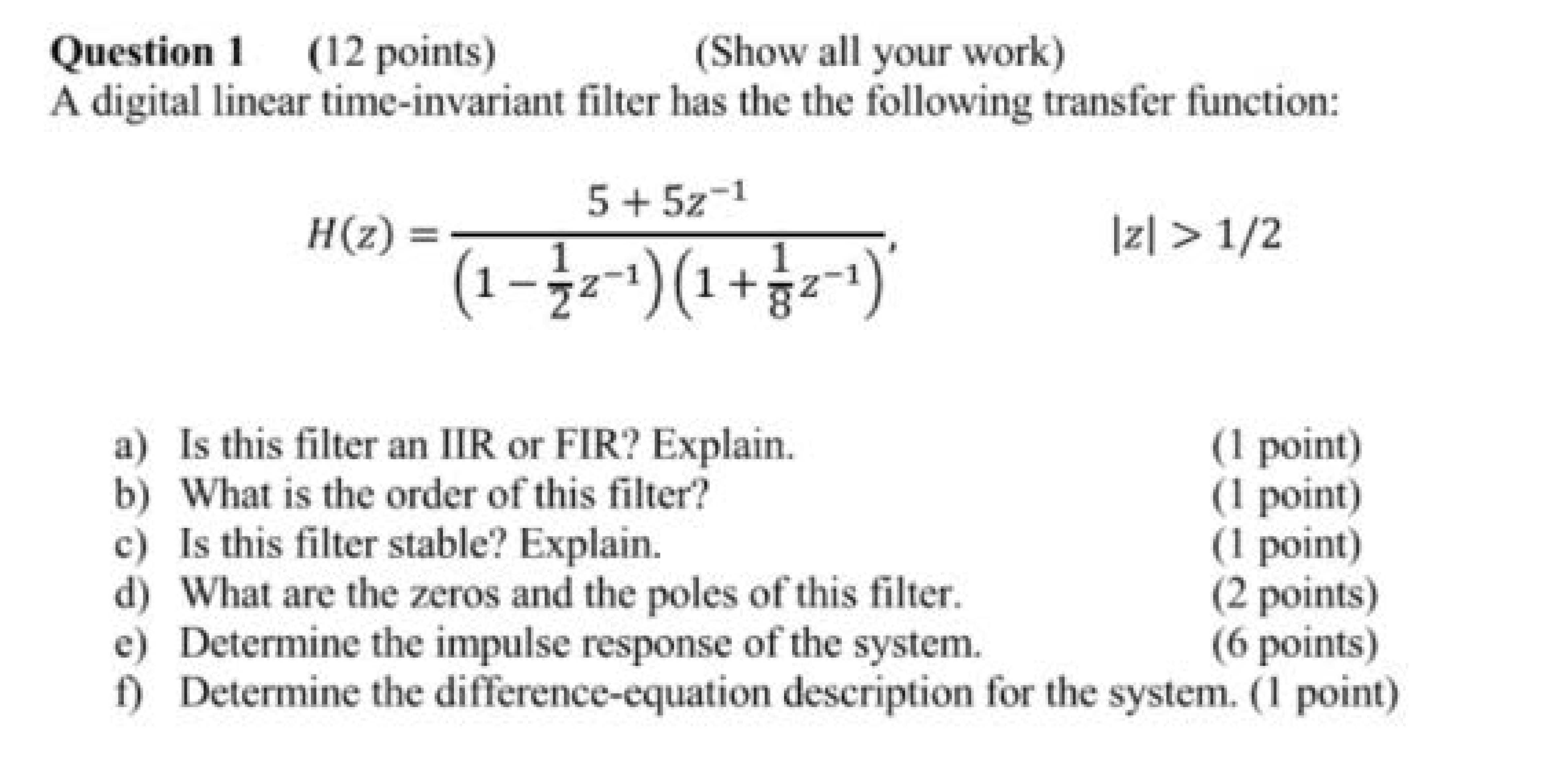 Question 1 (12 points) (Show all your work) A digital linear tim...