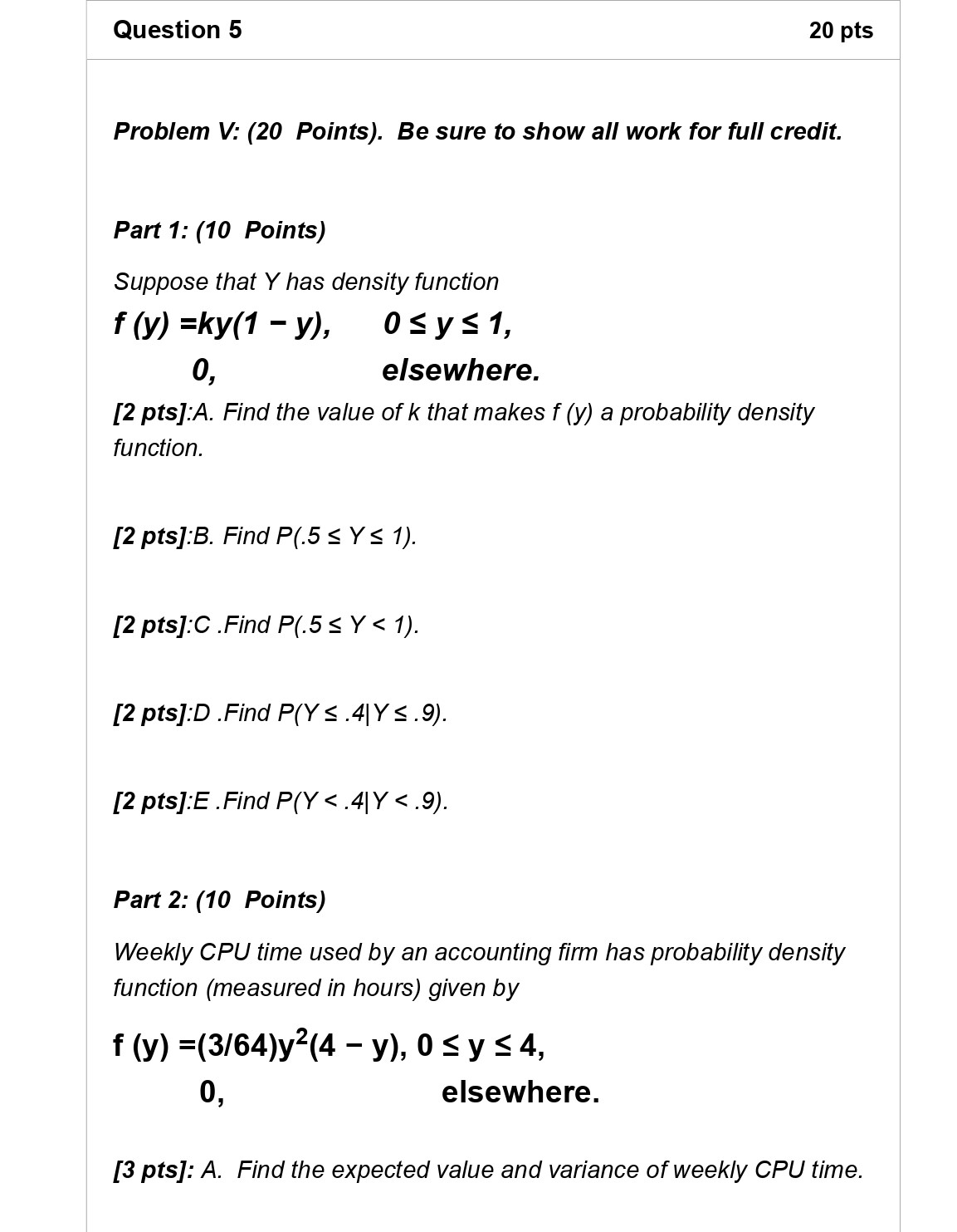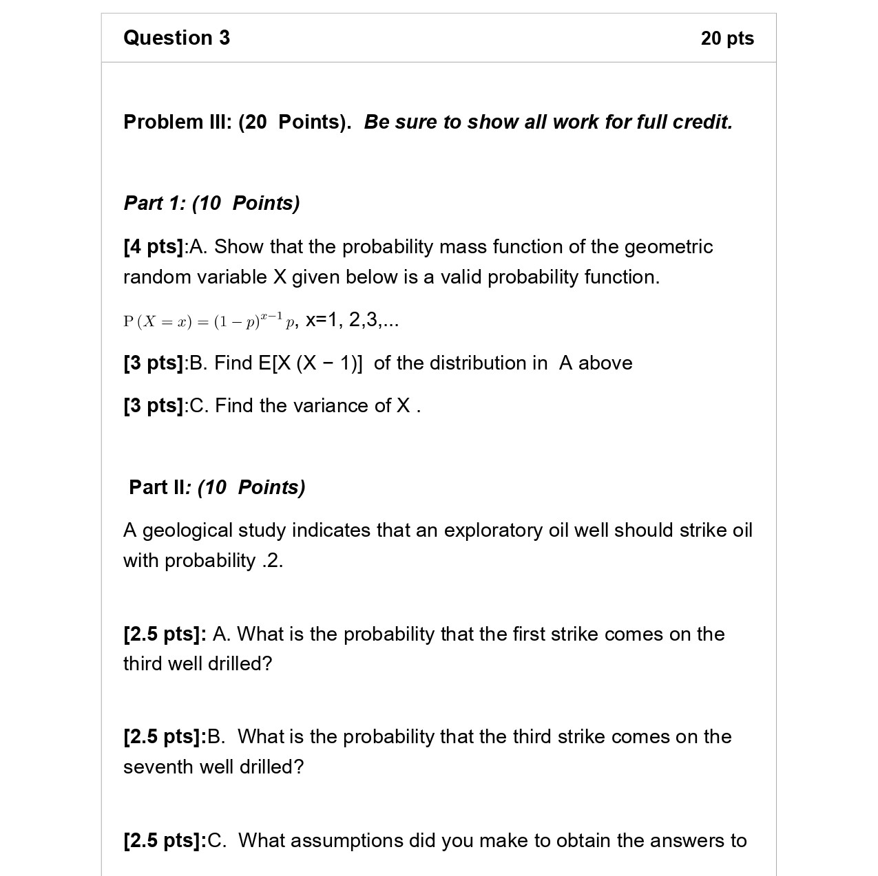 Problem I: (20 Points). Be sure to show all work for full credit....