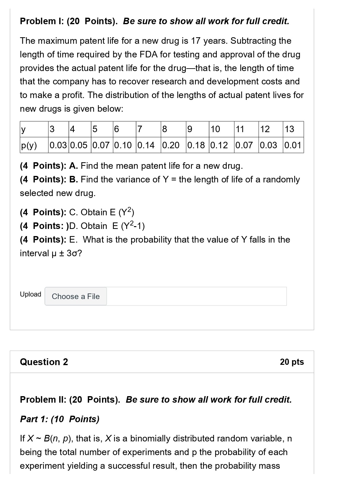 Problem I: (20 Points). Be sure to show all work for full credit. ...