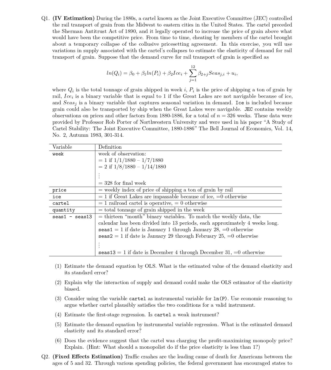 Q1. (IV Estimation) During the 1880s, a cartel known as the Joint E...