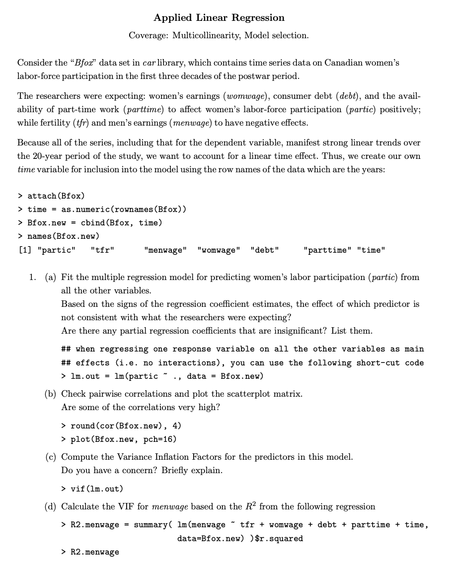 Applied Linear Regression Coverage: Multicollinearity, Model selec...