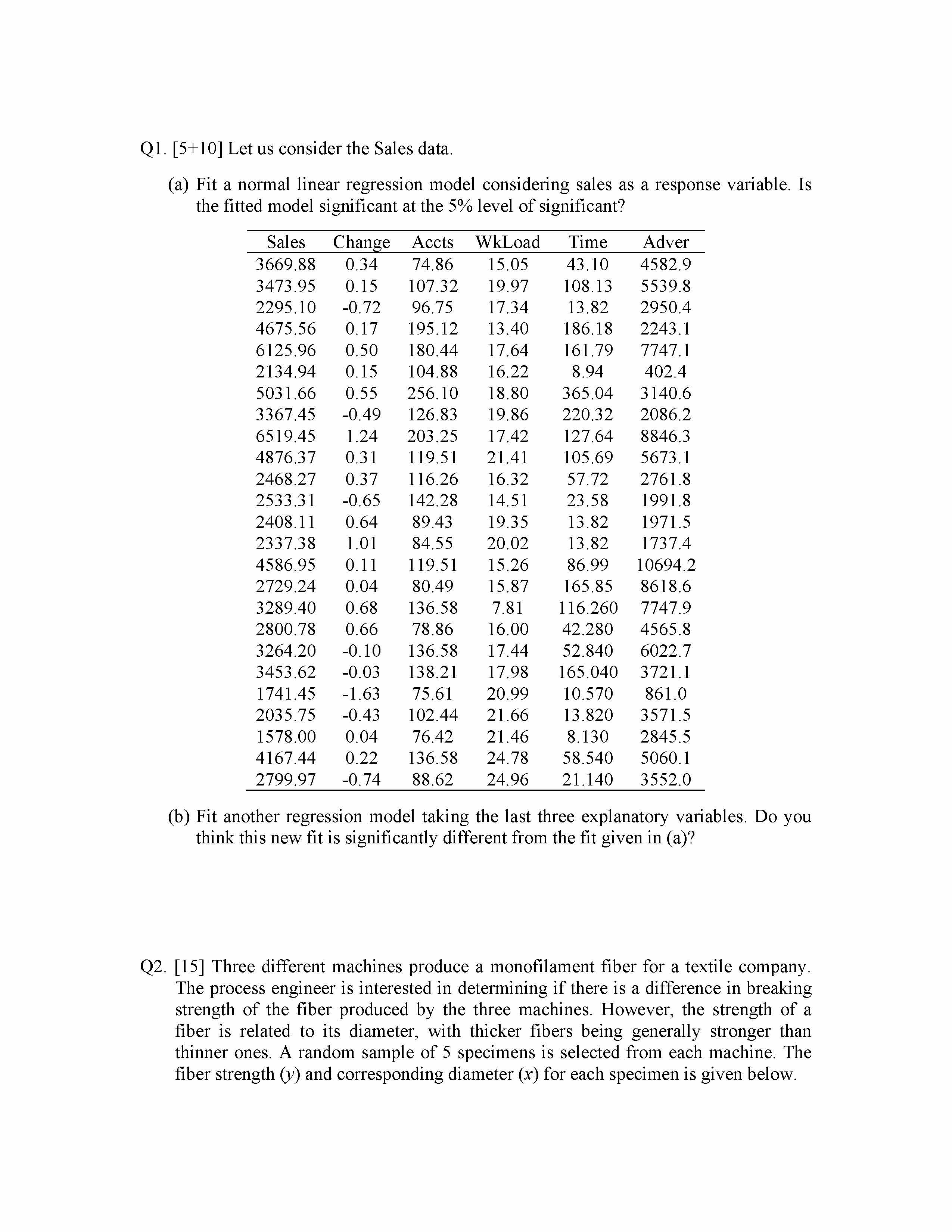 Q1. [5+10] Let us consider the Sales data. (a) Fit a normal li...