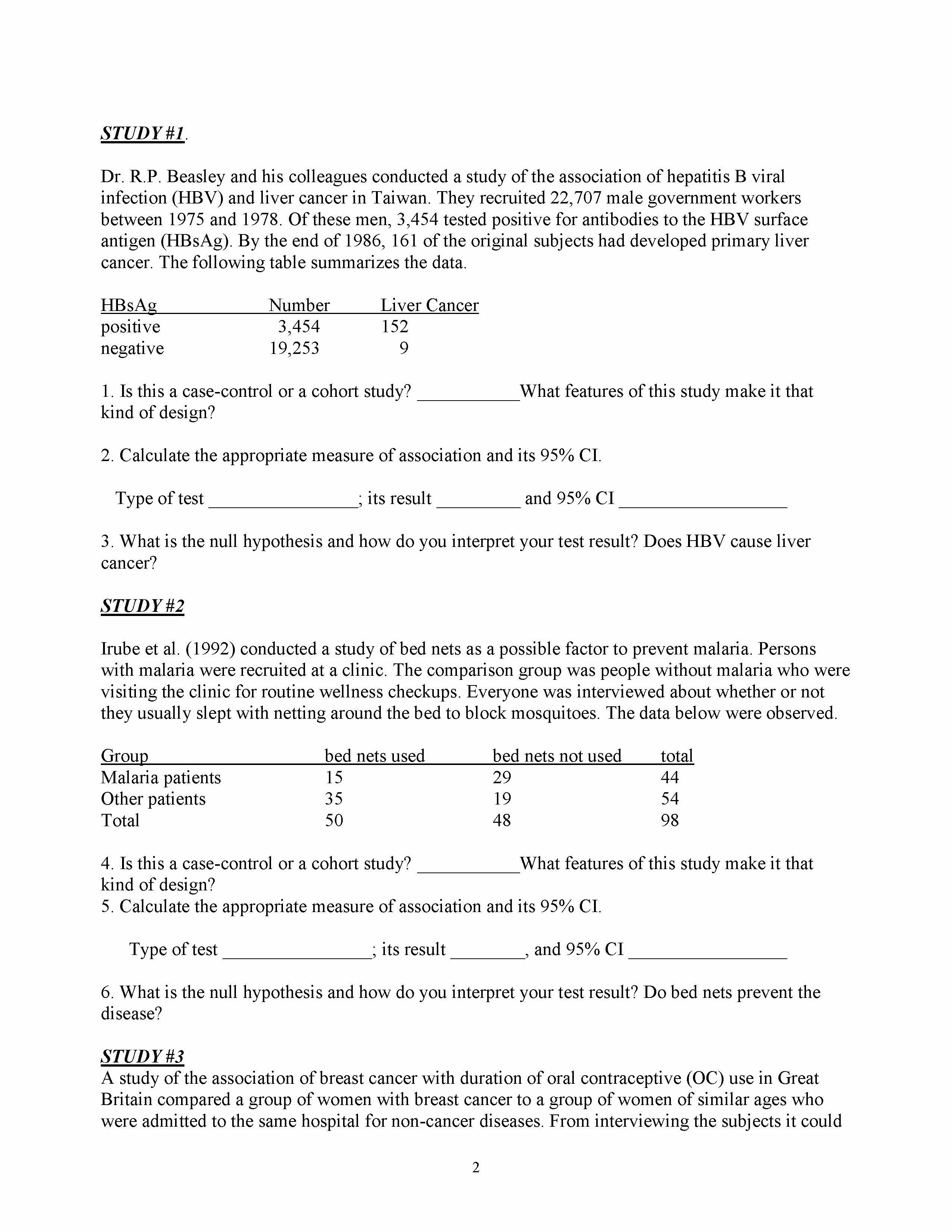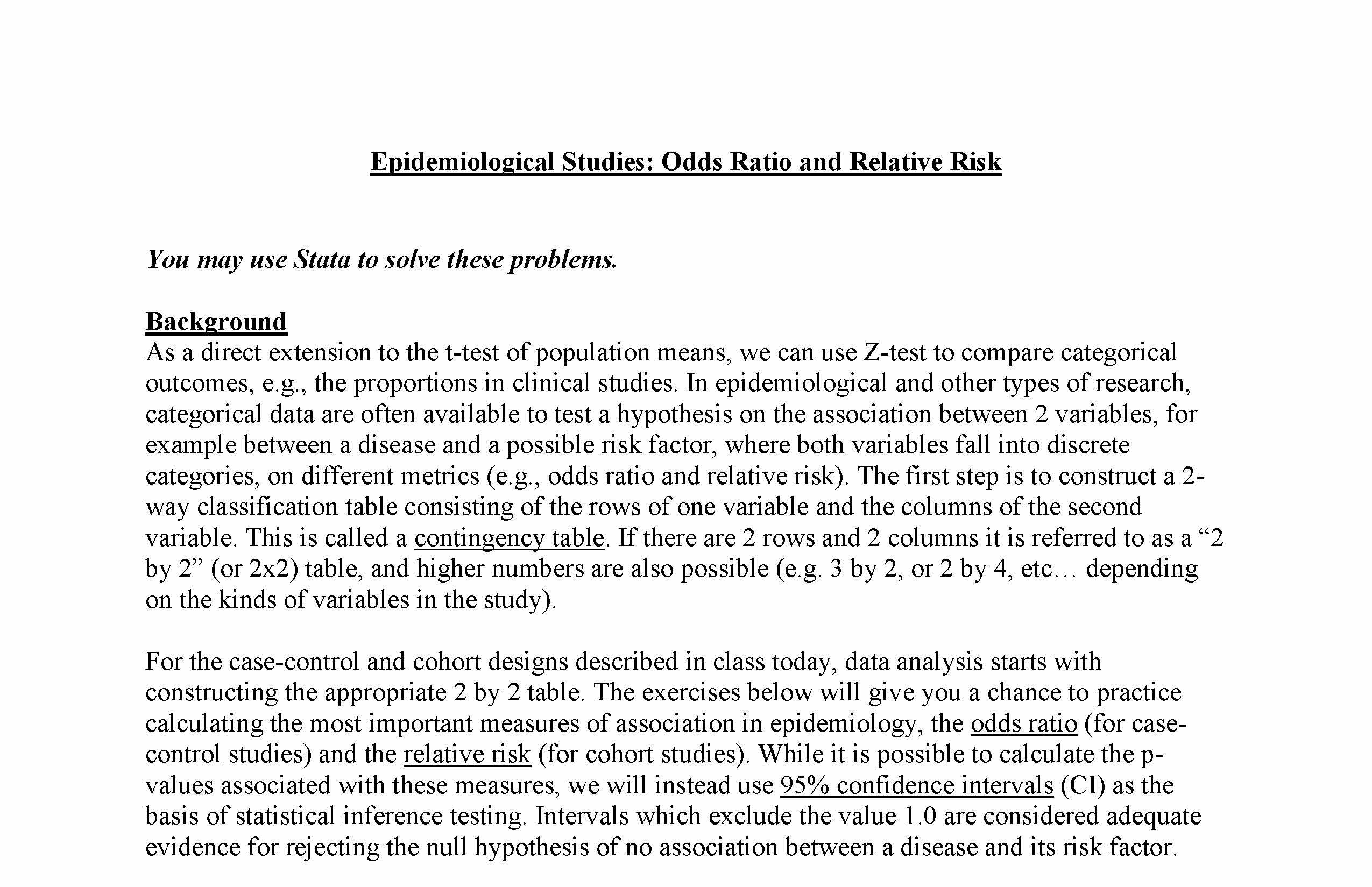Epidemiological Studies: Odds Ratio and Relative Risk You may use...