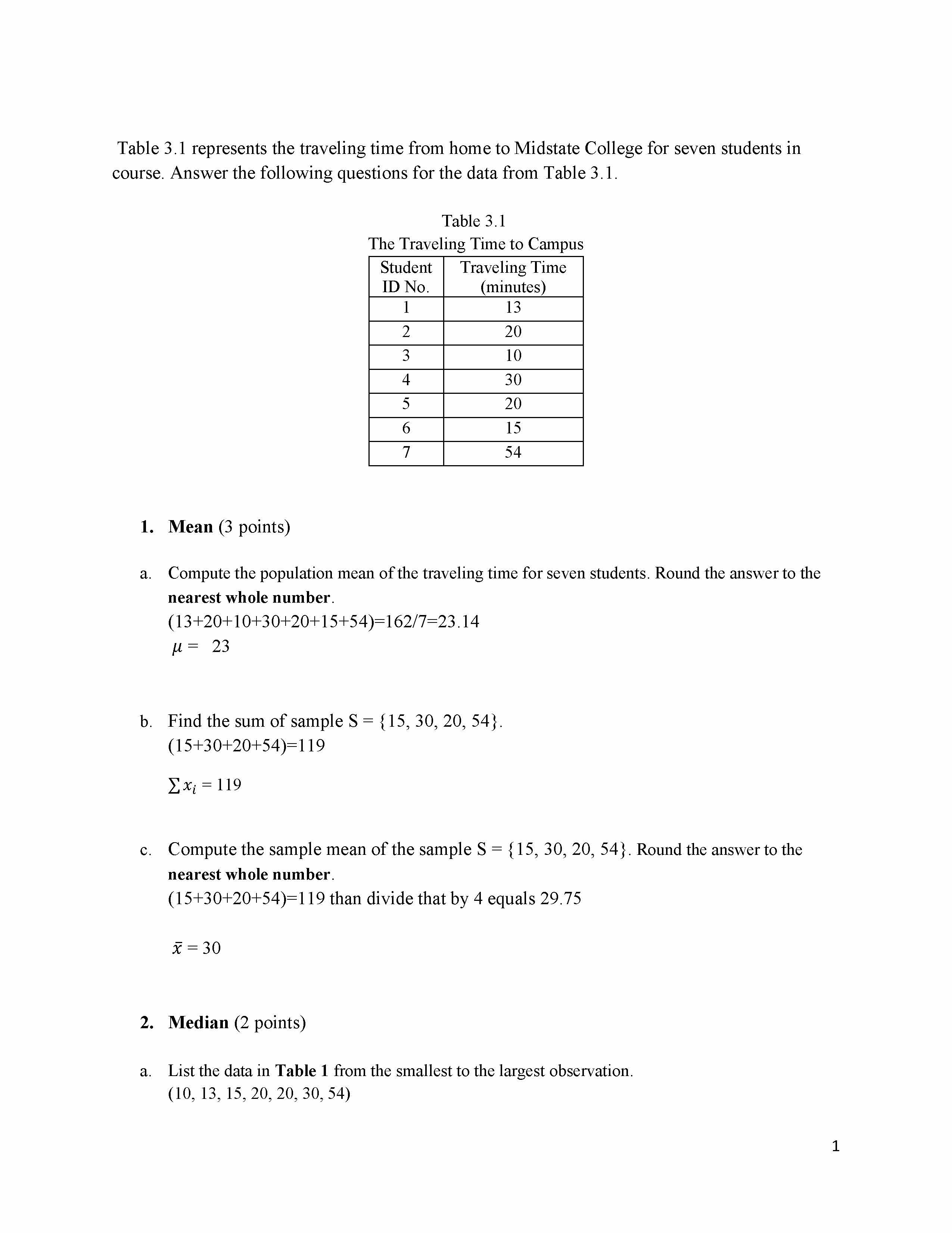 Table 3.1 represents the traveling time from home to Midstate Colle...
