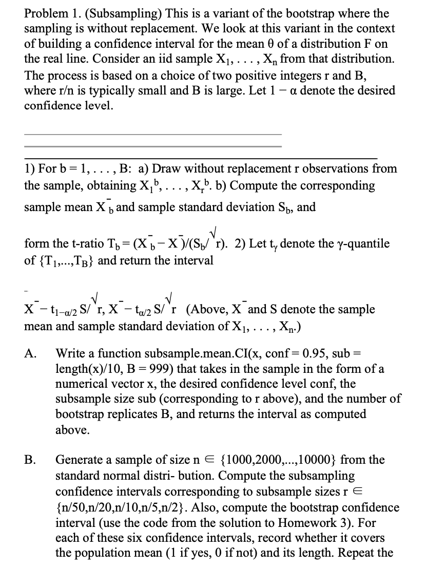 Problem 1. (Subsampling) This is a variant of the bootstrap where t...