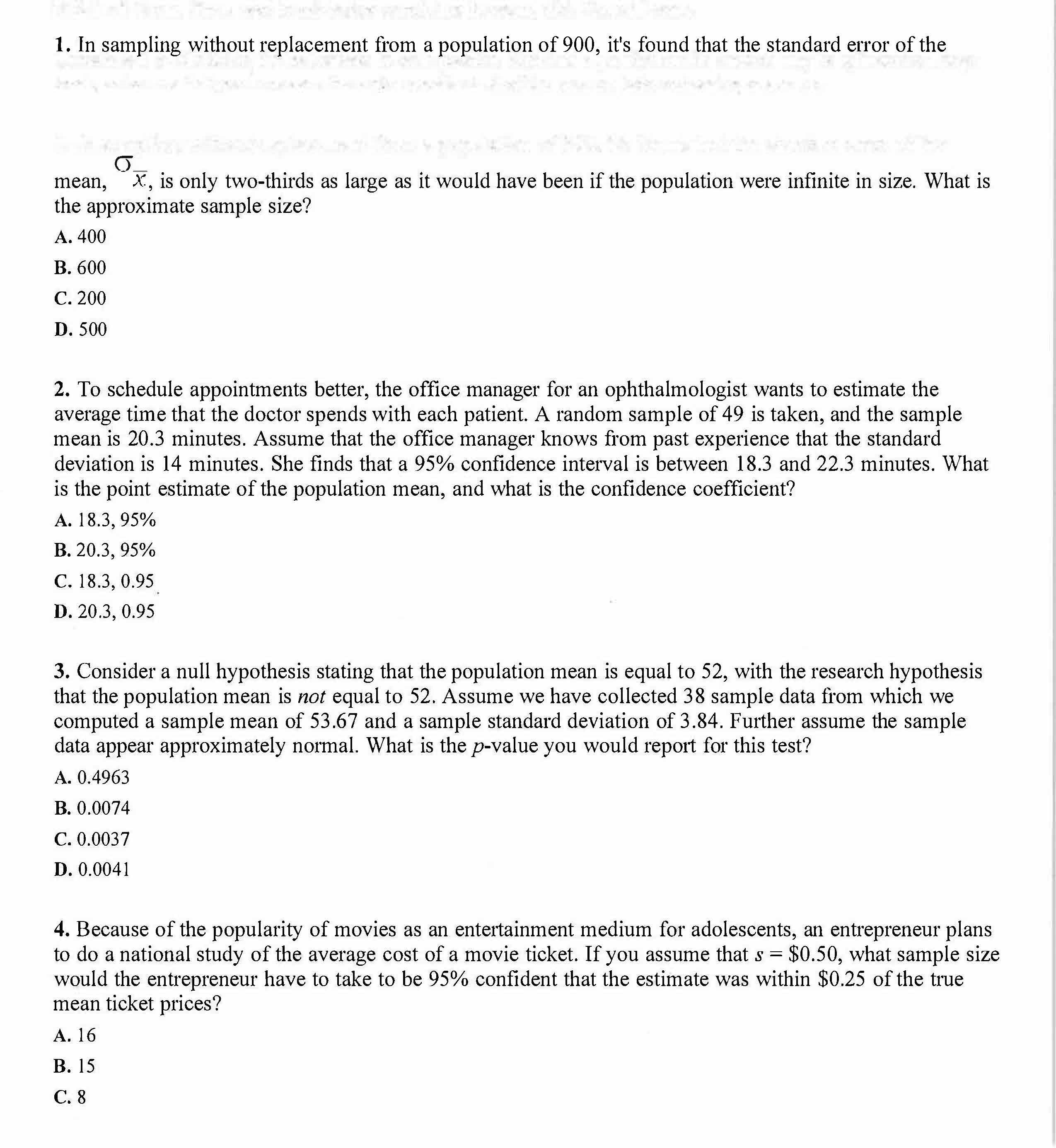1. In sampling without replacement from a population of 900, it's f...