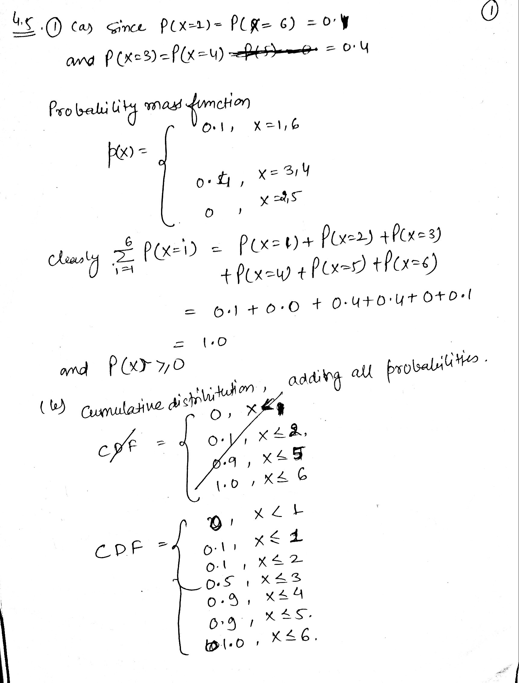 4.5 Exercises 1. Suppose that x(S) = {1,3,4,6} with P(X = 1) = of...