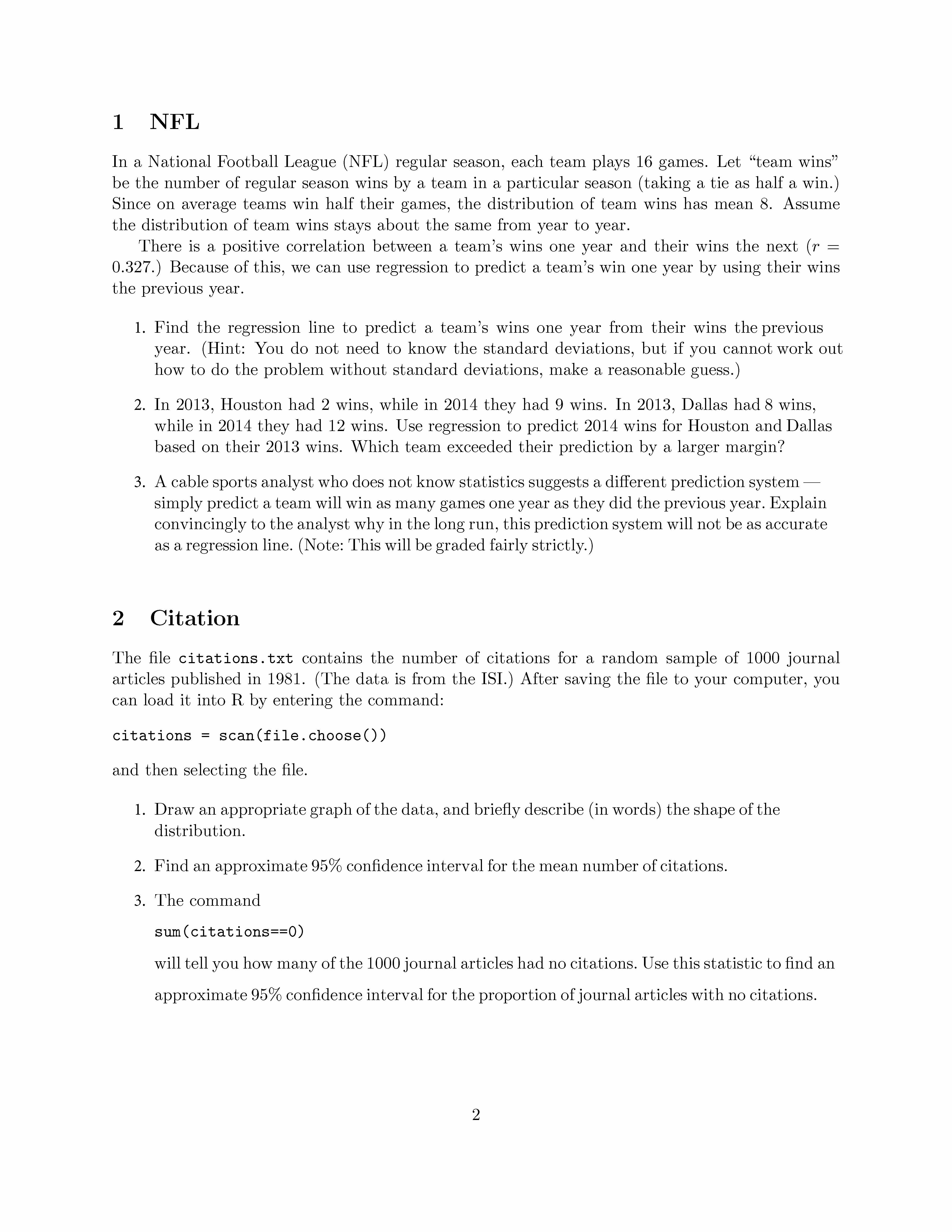 1 NFL In a National Football League (NFL) regular season, each tea...
