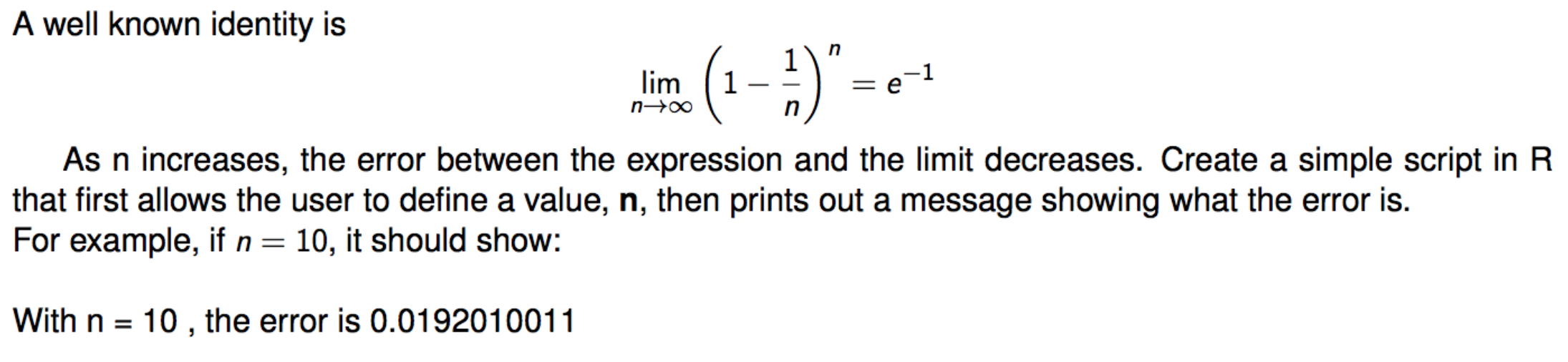 A well known identity is n->00 As n increases, the error betw...