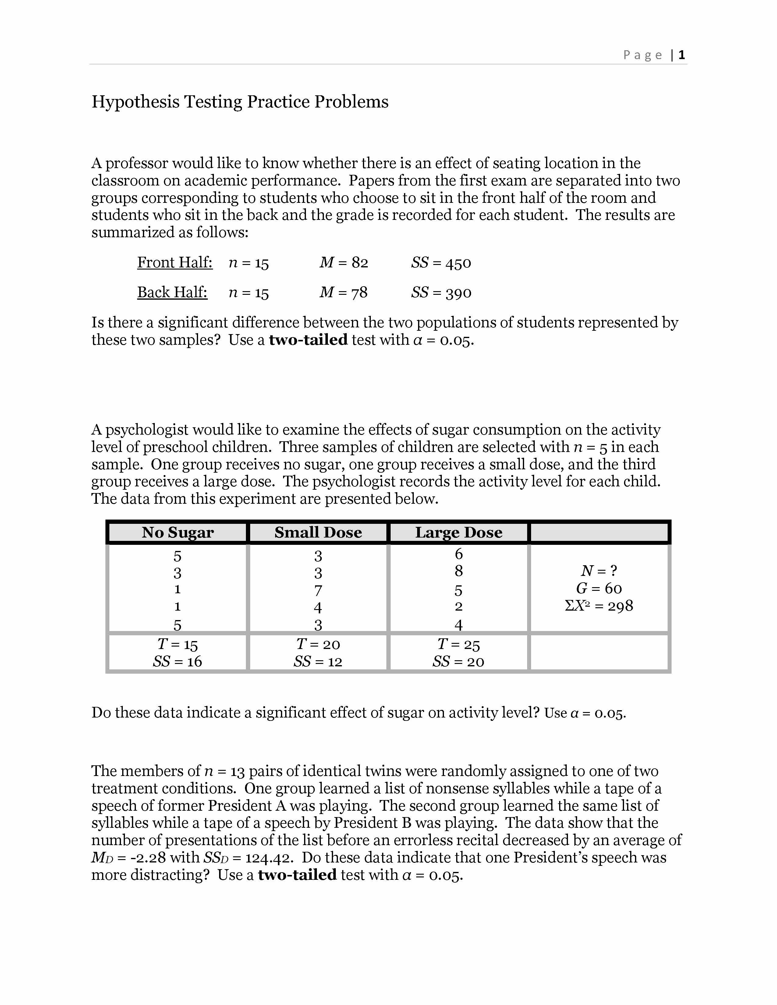 P g e 1 Hypothesis Testing Practice Problems A professor would li...