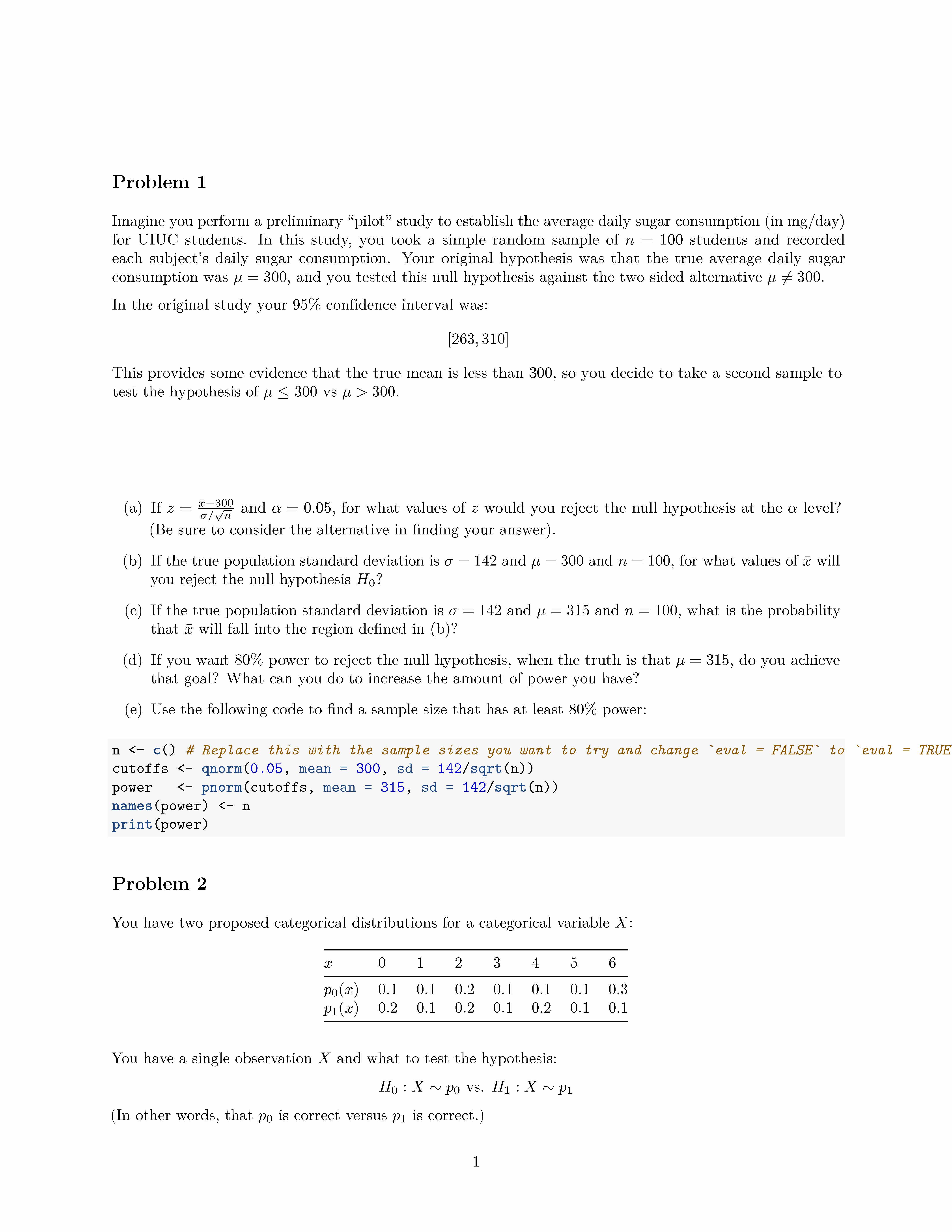 Problem 1 Imagine you perform preliminary "pilot' study to es...