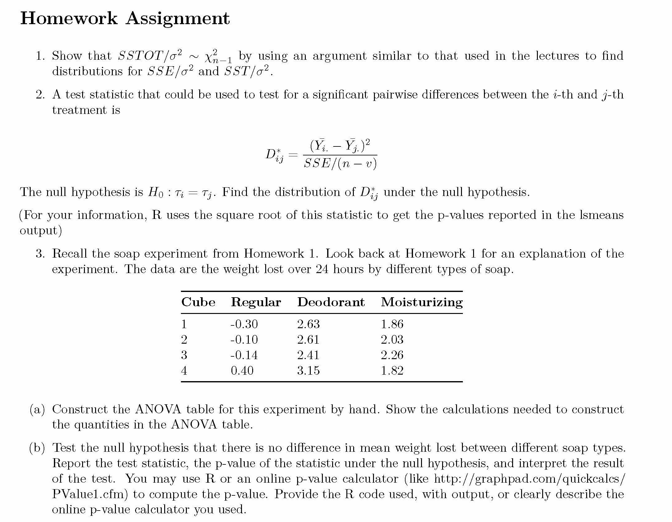 Homework Assignment 1. Show that SSTOT/a2 N x2-1 by using an argum...