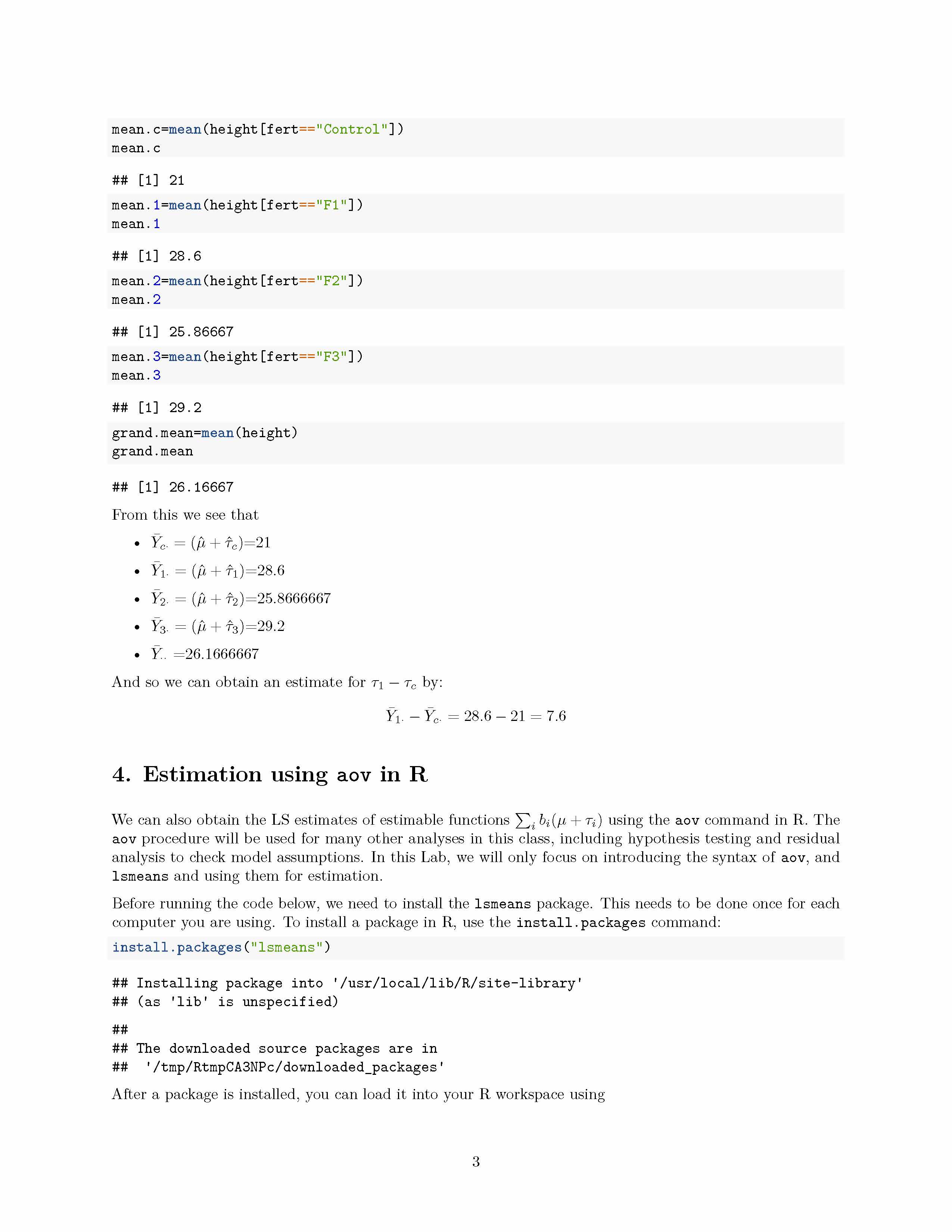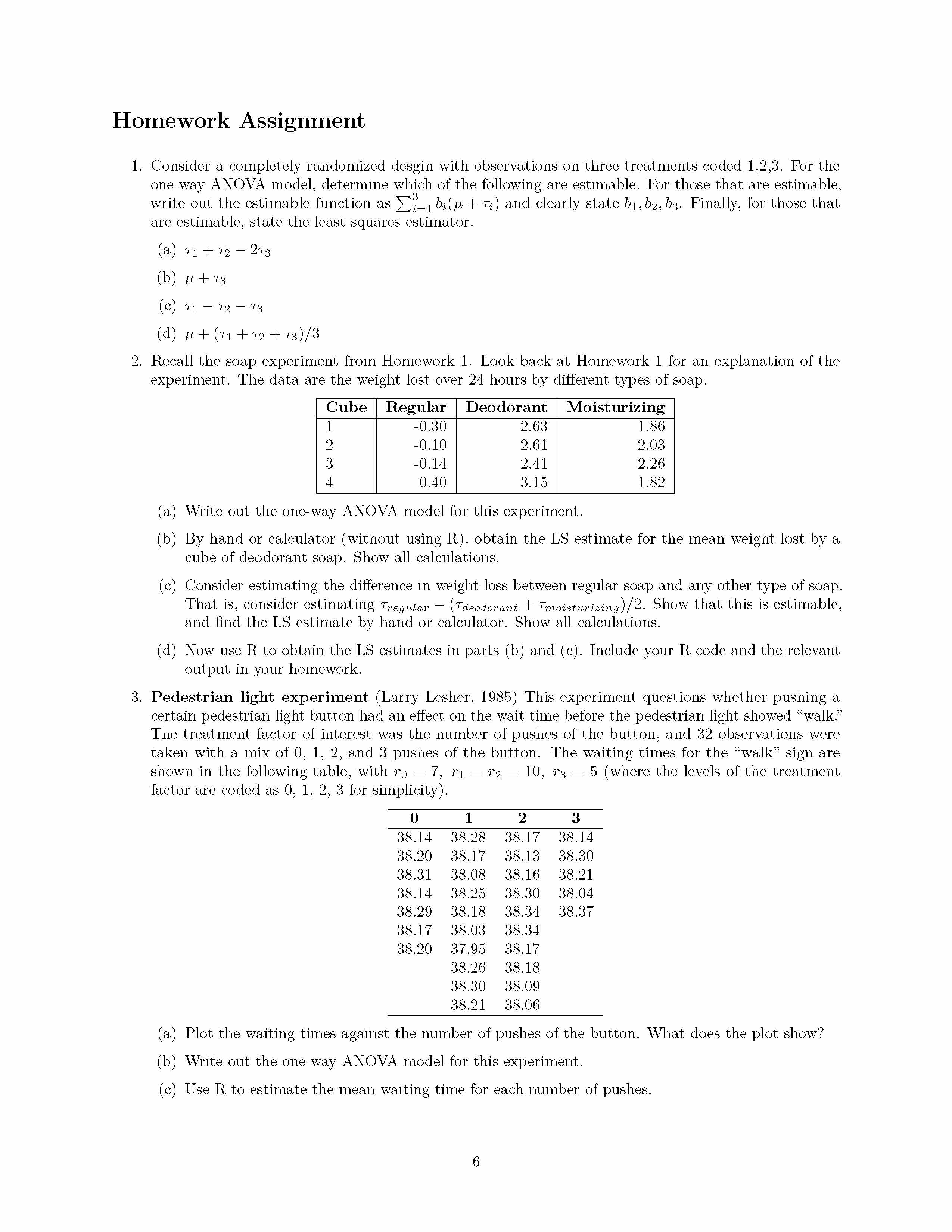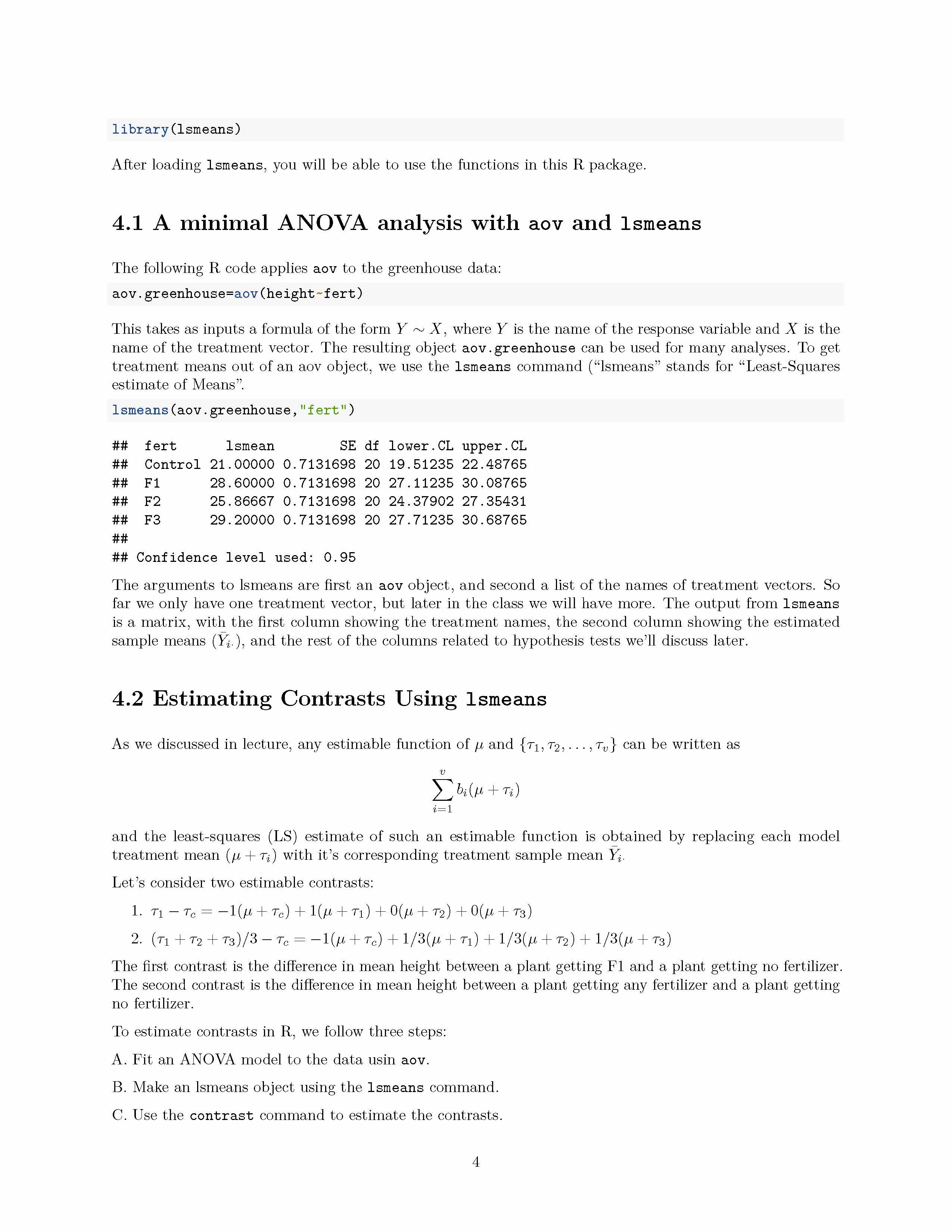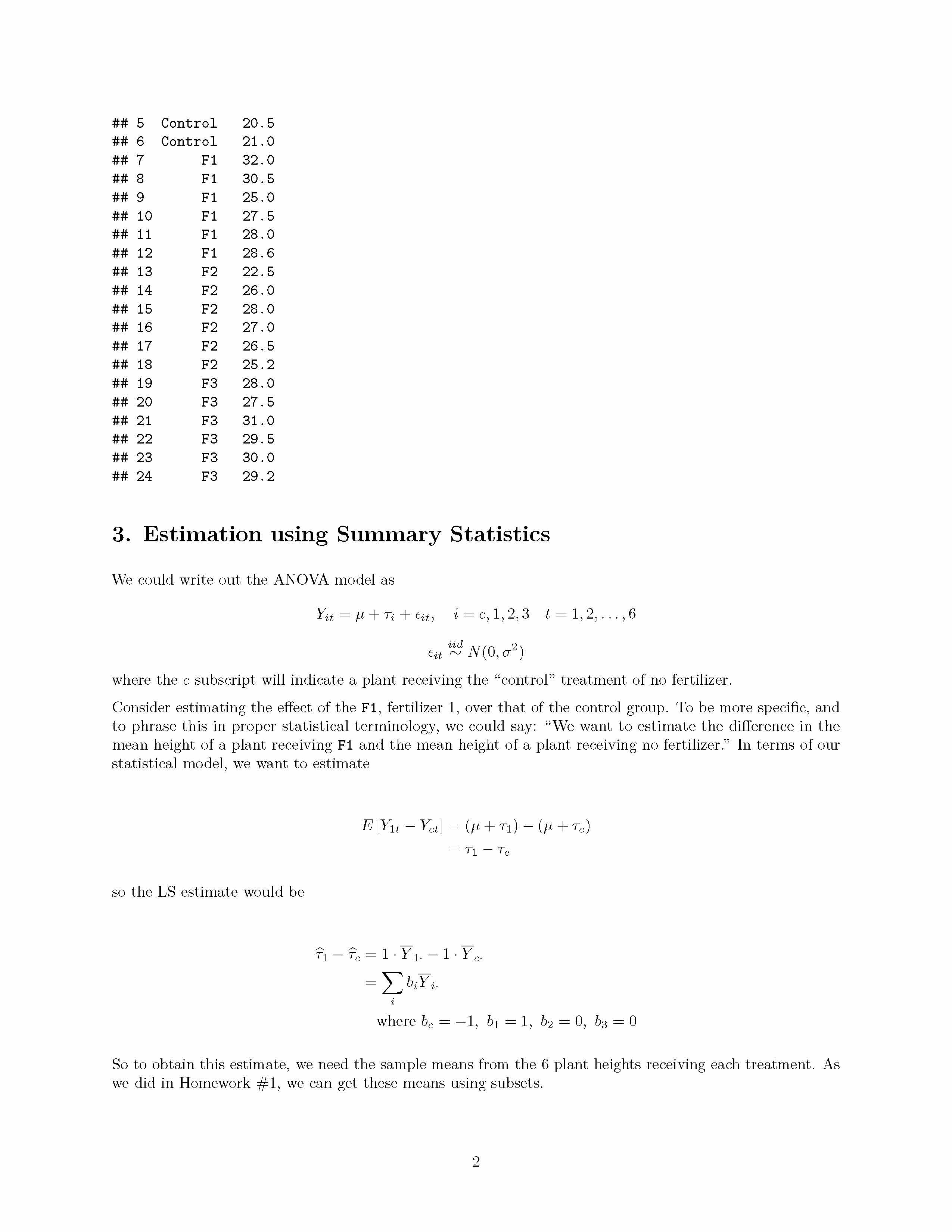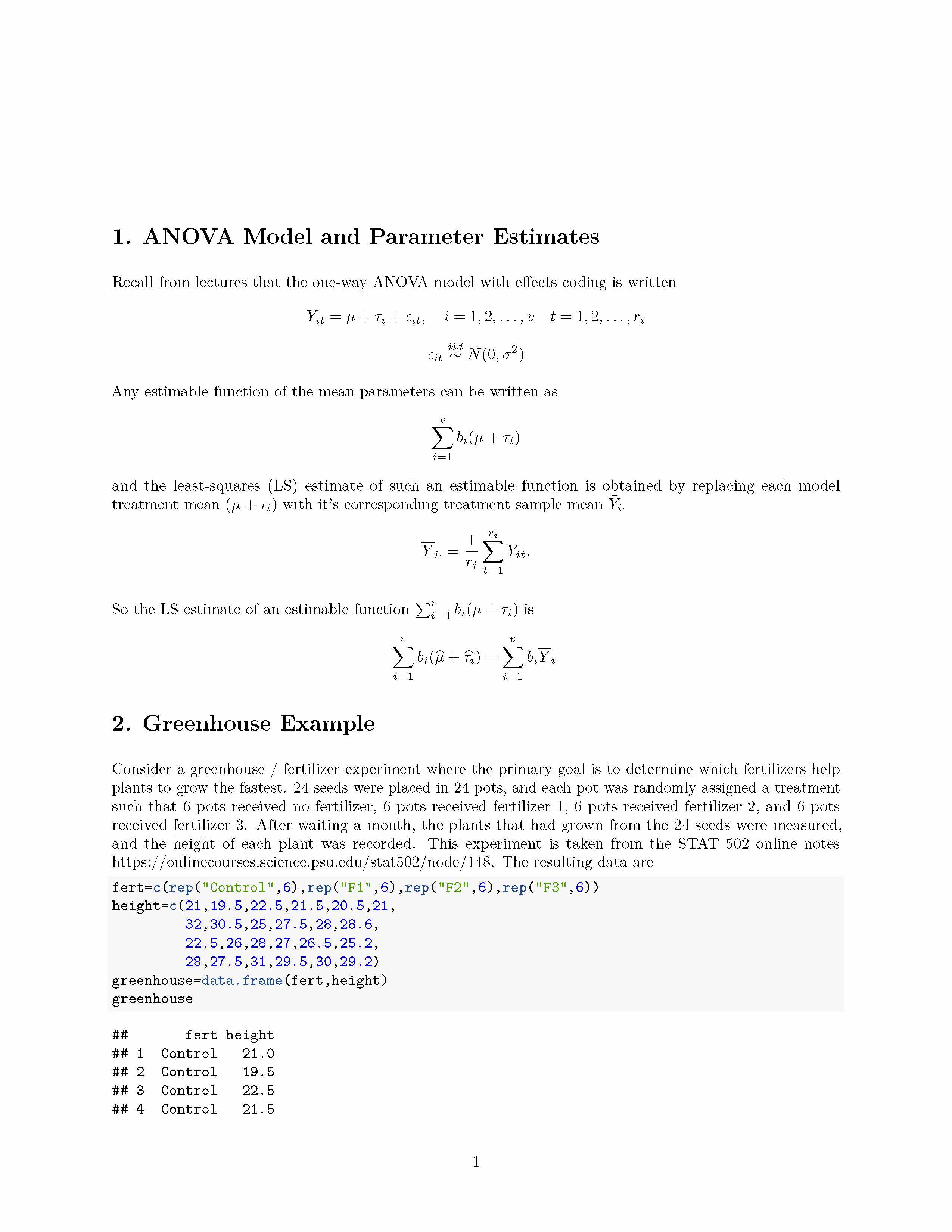 1. ANOVA Model and Parameter Estimates Recall from lectures that t...