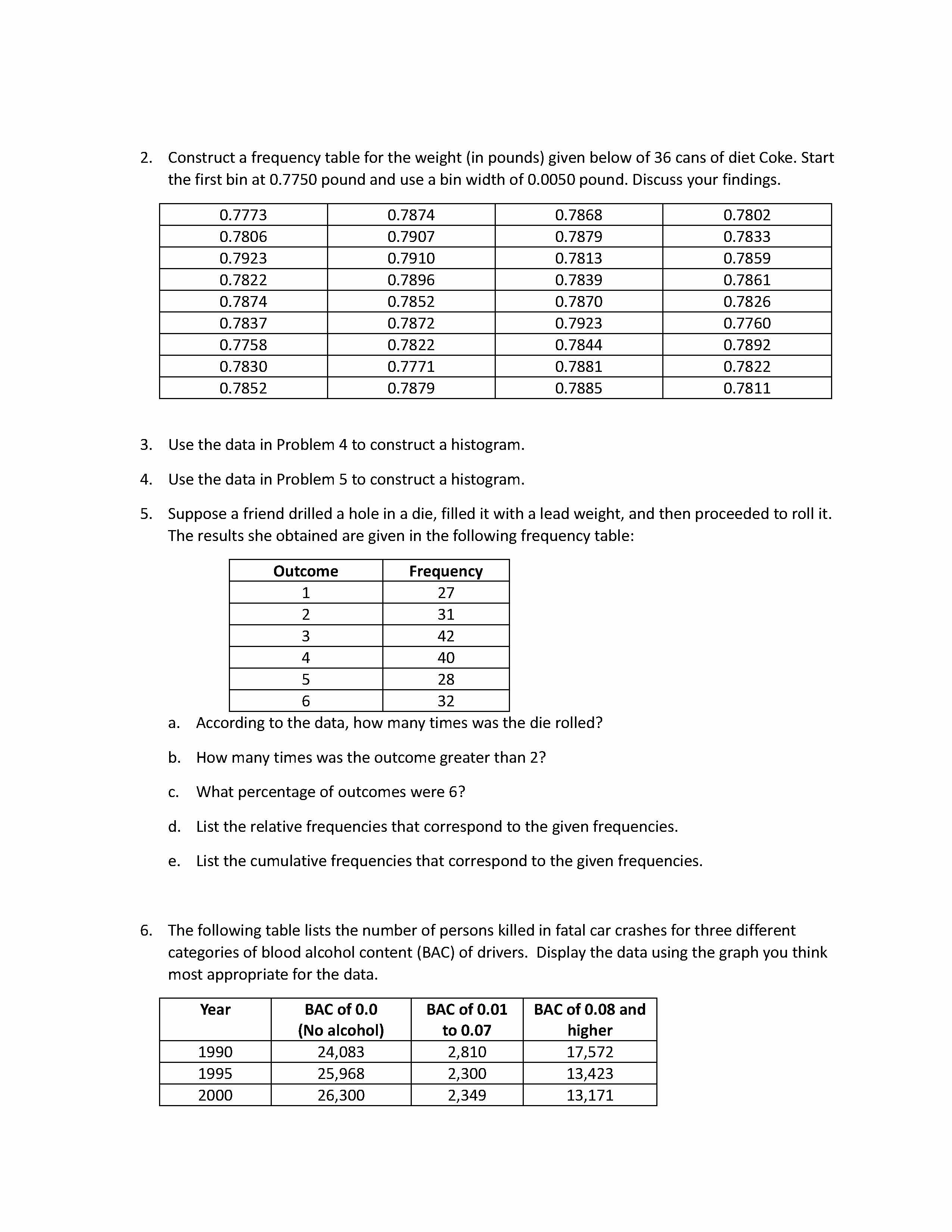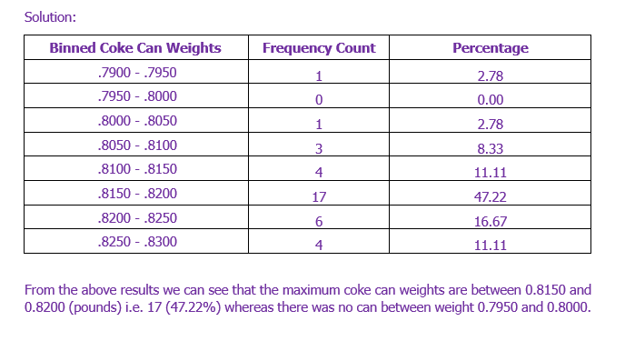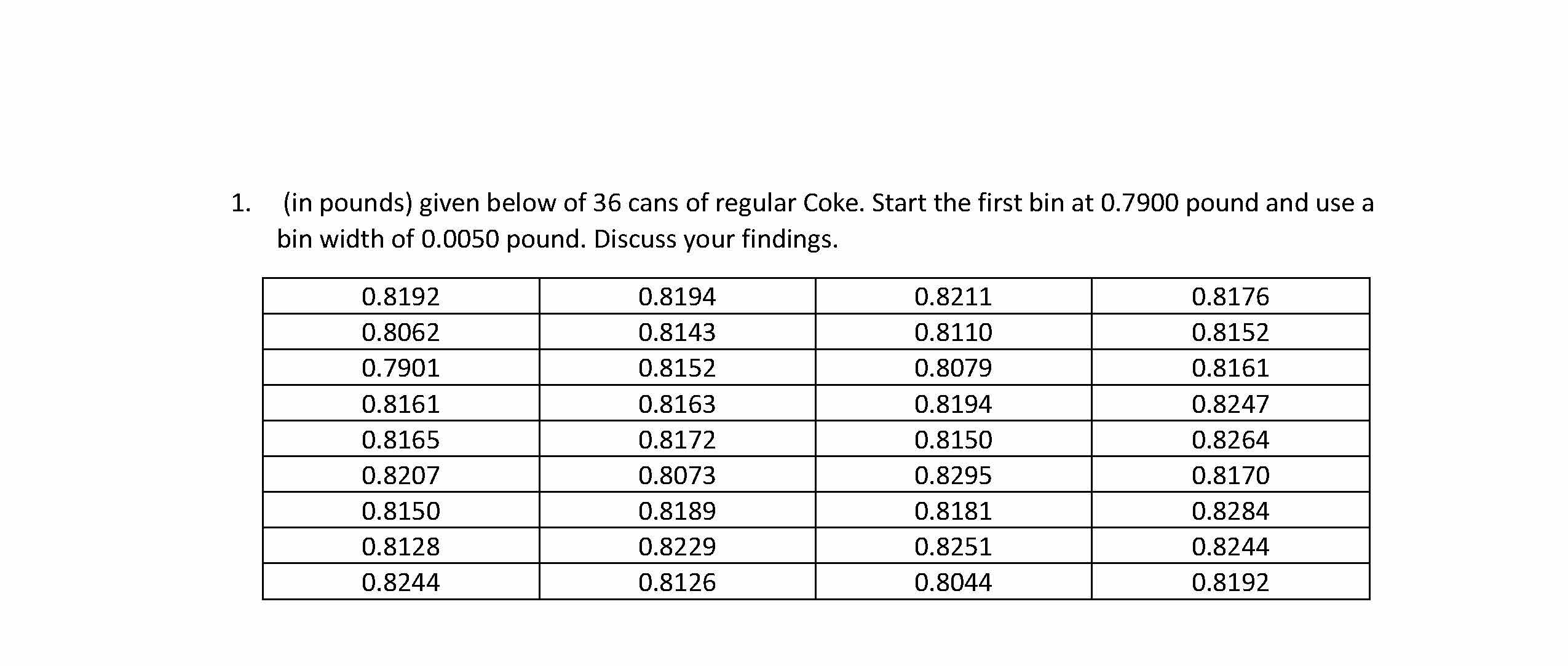 1. (in pounds) given below of 36 cans of regular Coke. Start the fi...