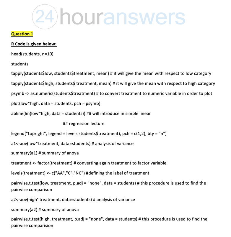 1. The data students (R package "HSAUR2" ) arise from a l...