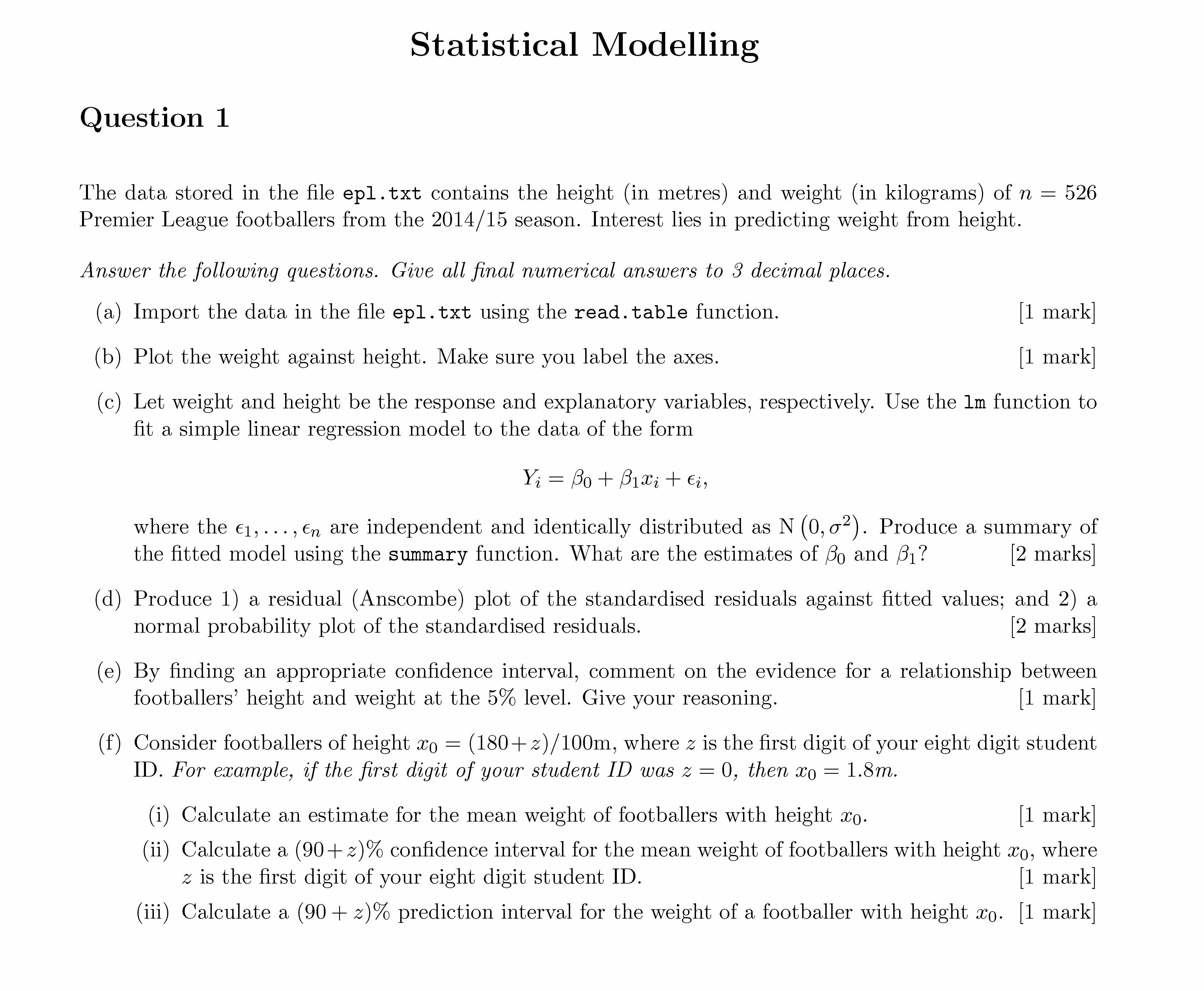 Question 1 The data stored in the file epl.txt contains the height...