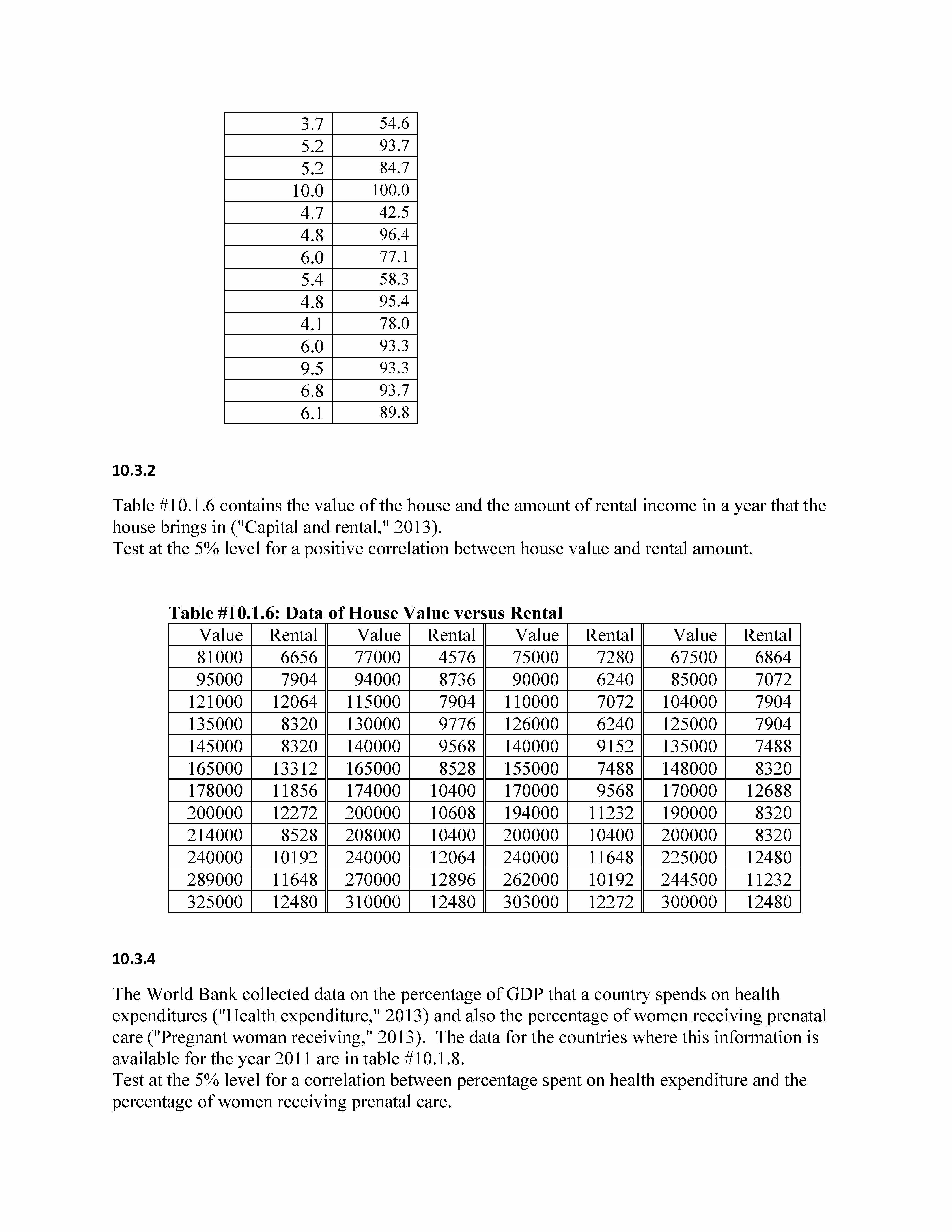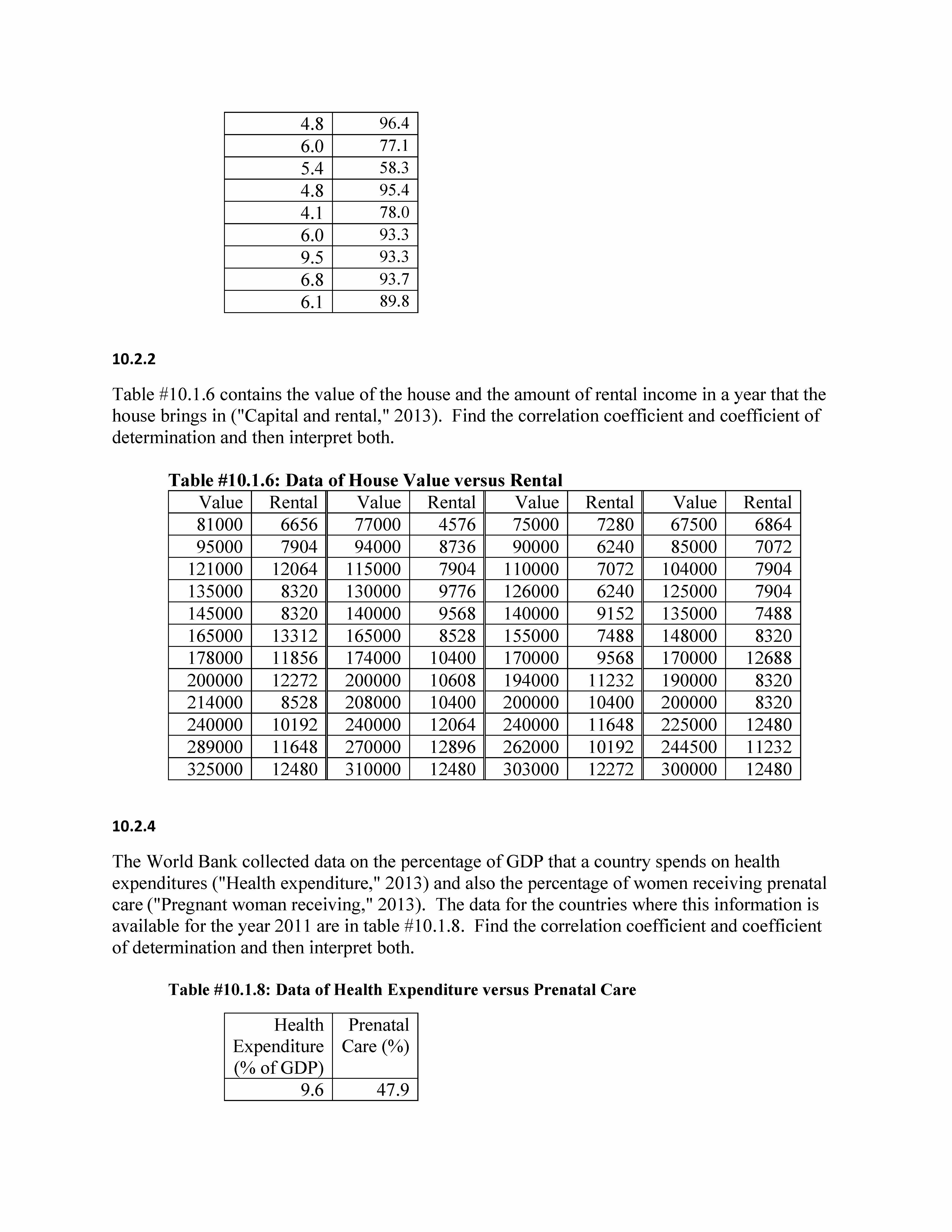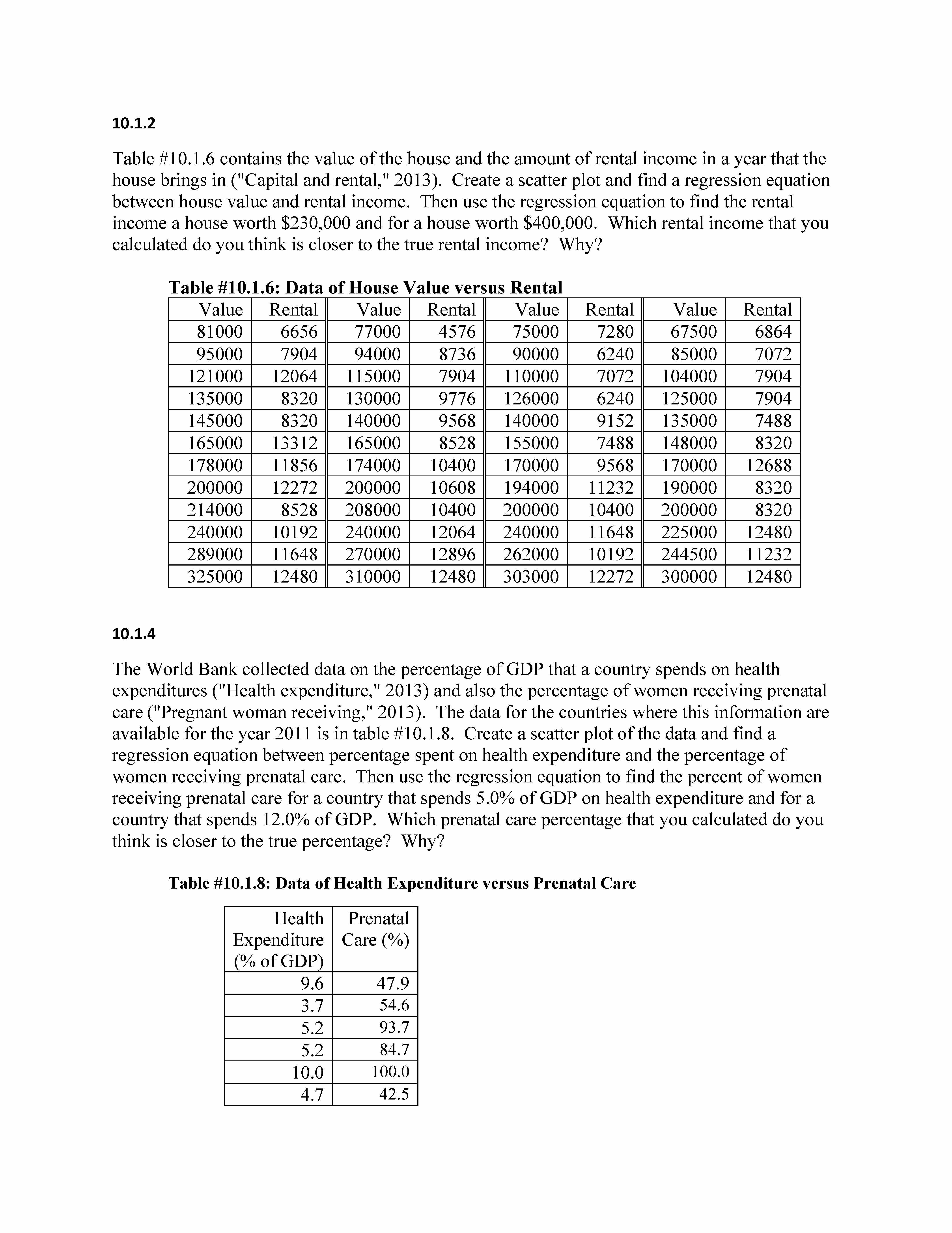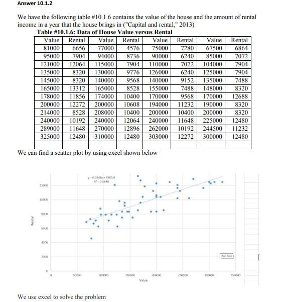 10.1.2 Table #10.1.6 contains the value of the house and the amoun...