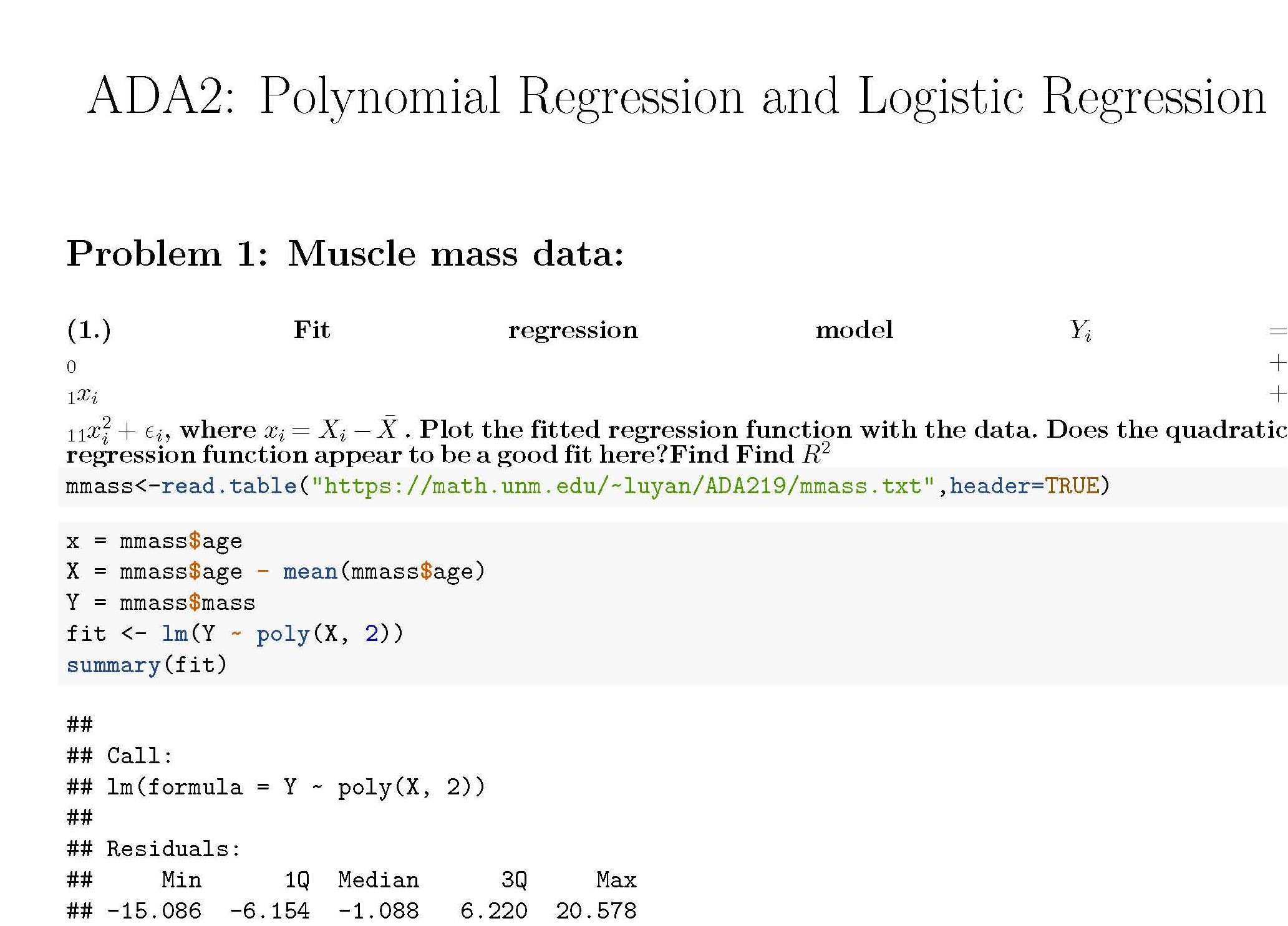 Problem 1: Muscle mass data: A person's muscle mass is expected to...