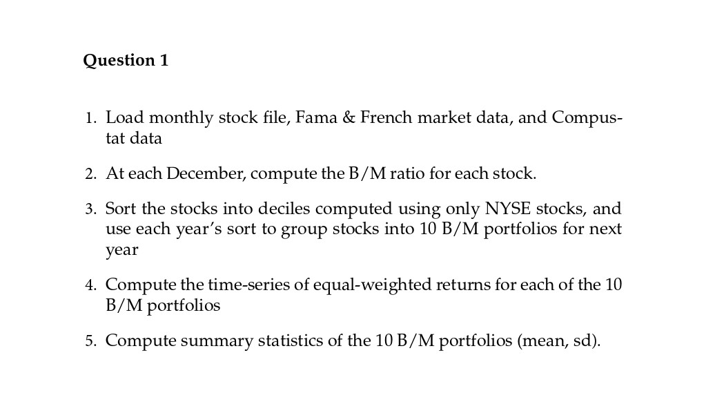 Question 1 1. Load monthly stock file, Fama & French market da...