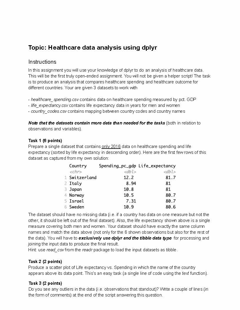 Topic: Healthcare data analysis using dplyr Instructions In thi...