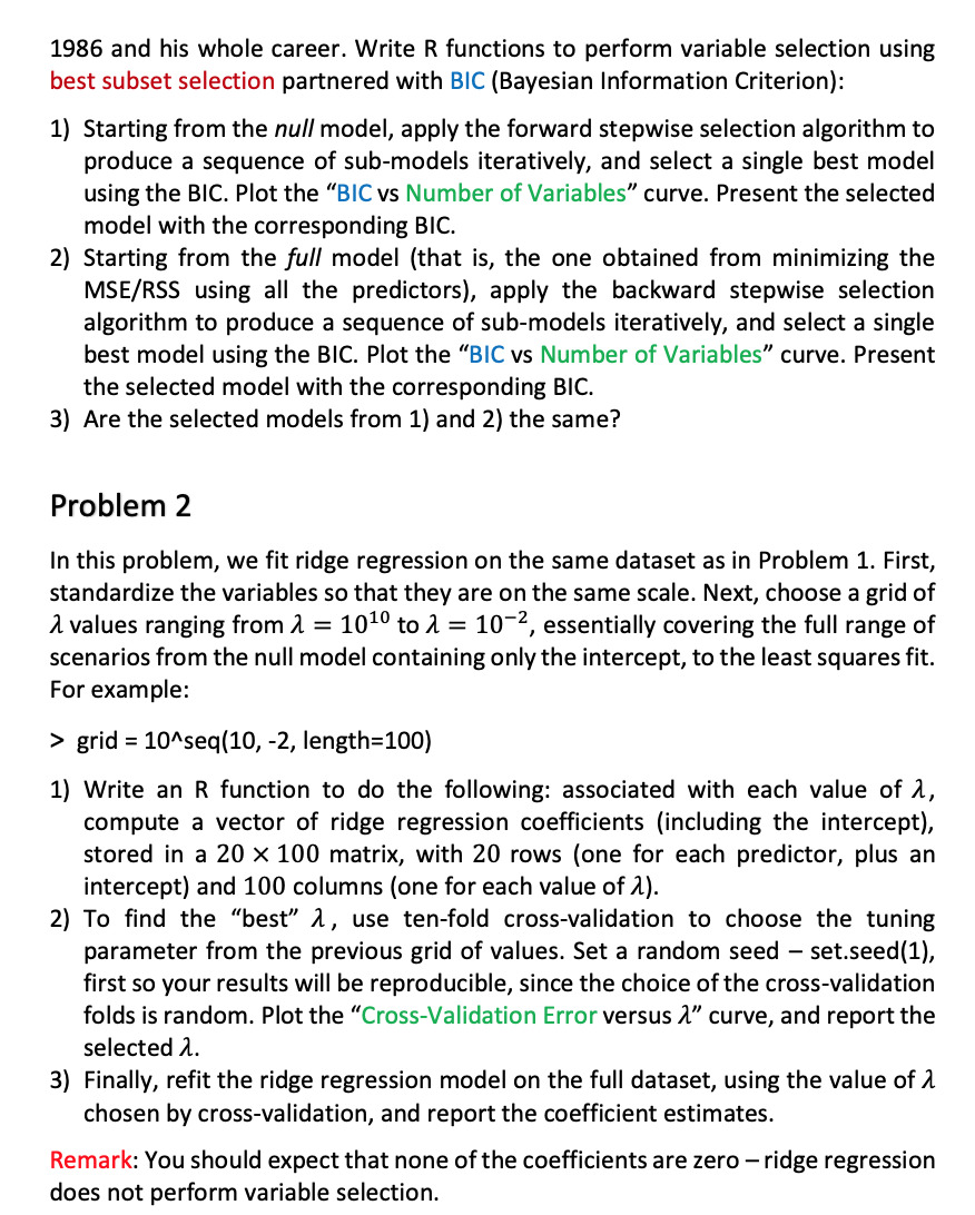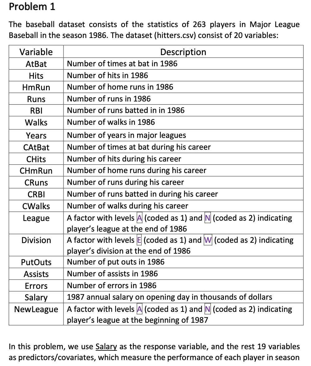 Problem 1 The baseball dataset consists of the statistics of 263 p...