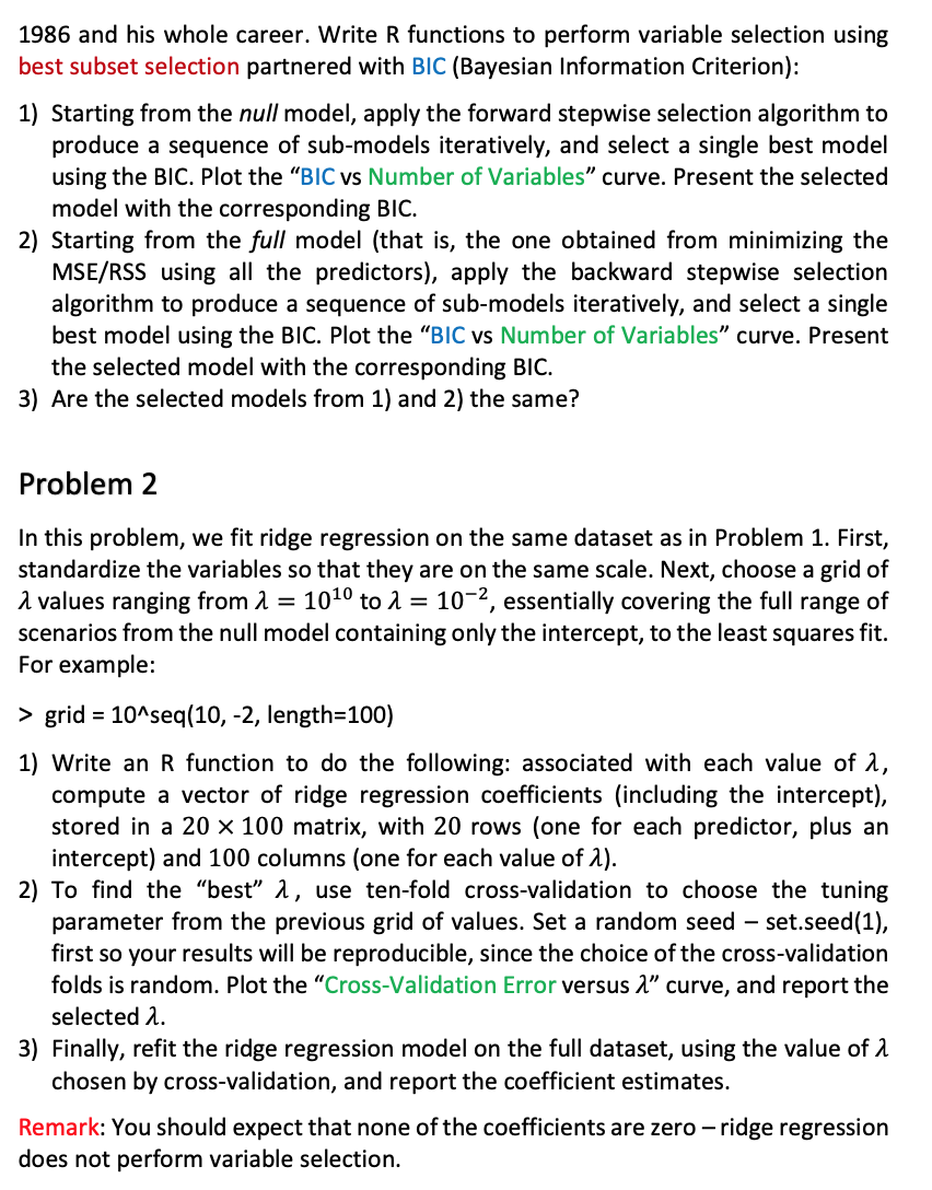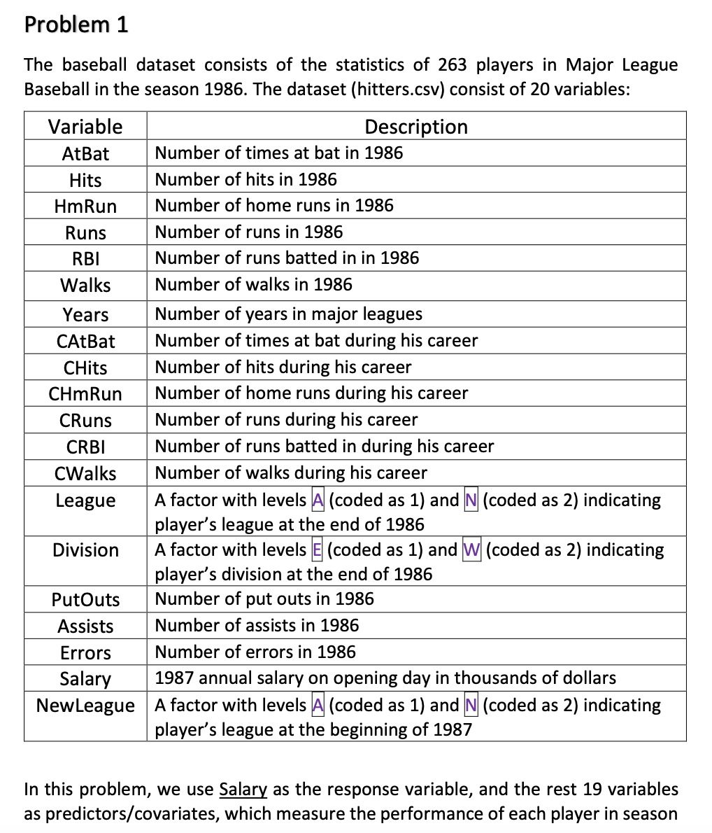 Problem 1 The baseball dataset consists of the statistics of 263 p...