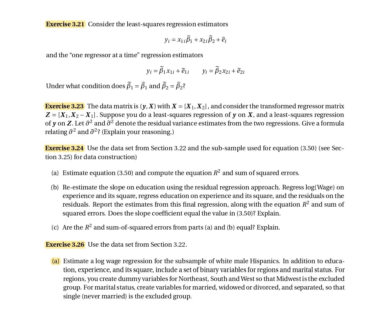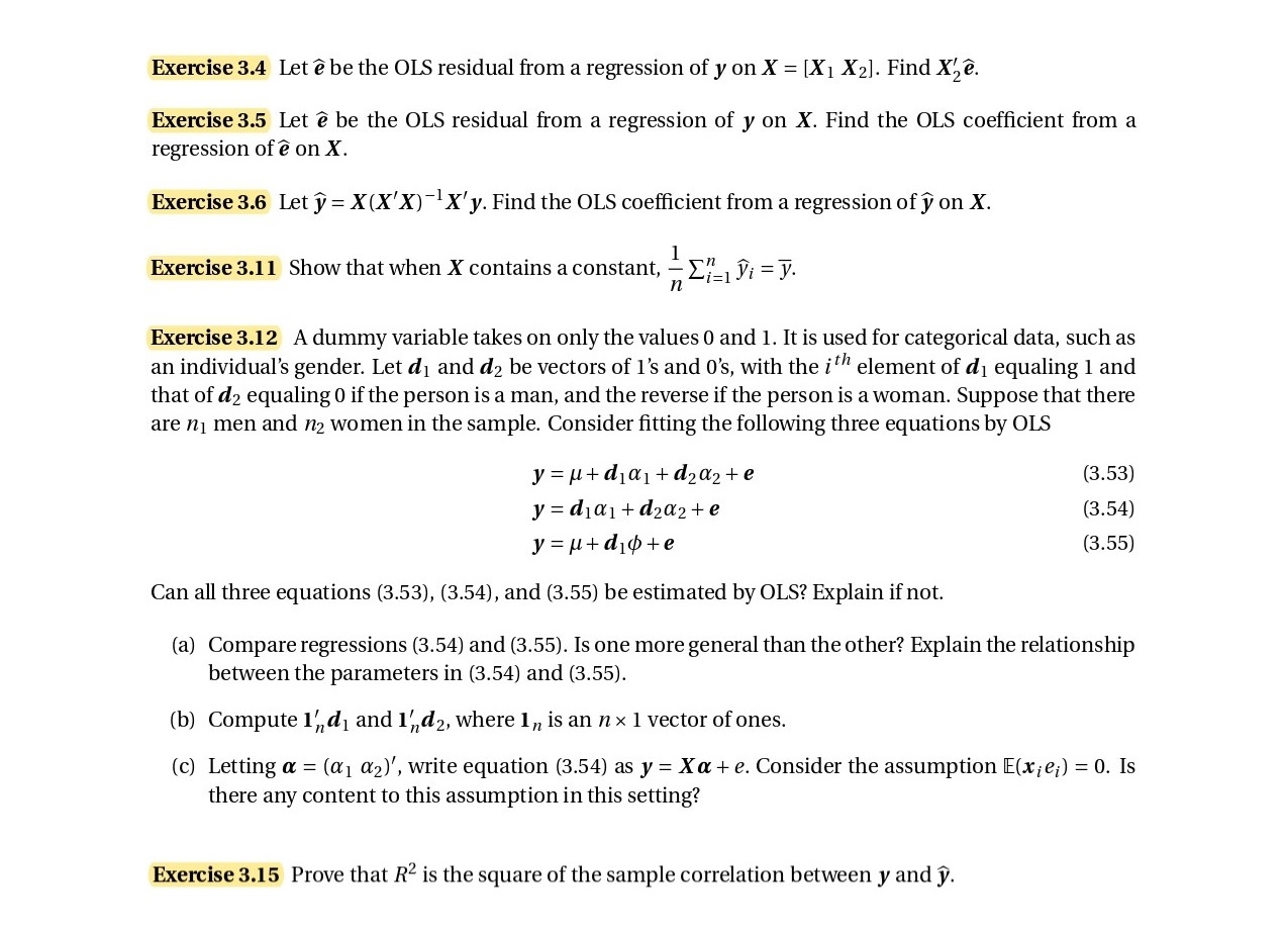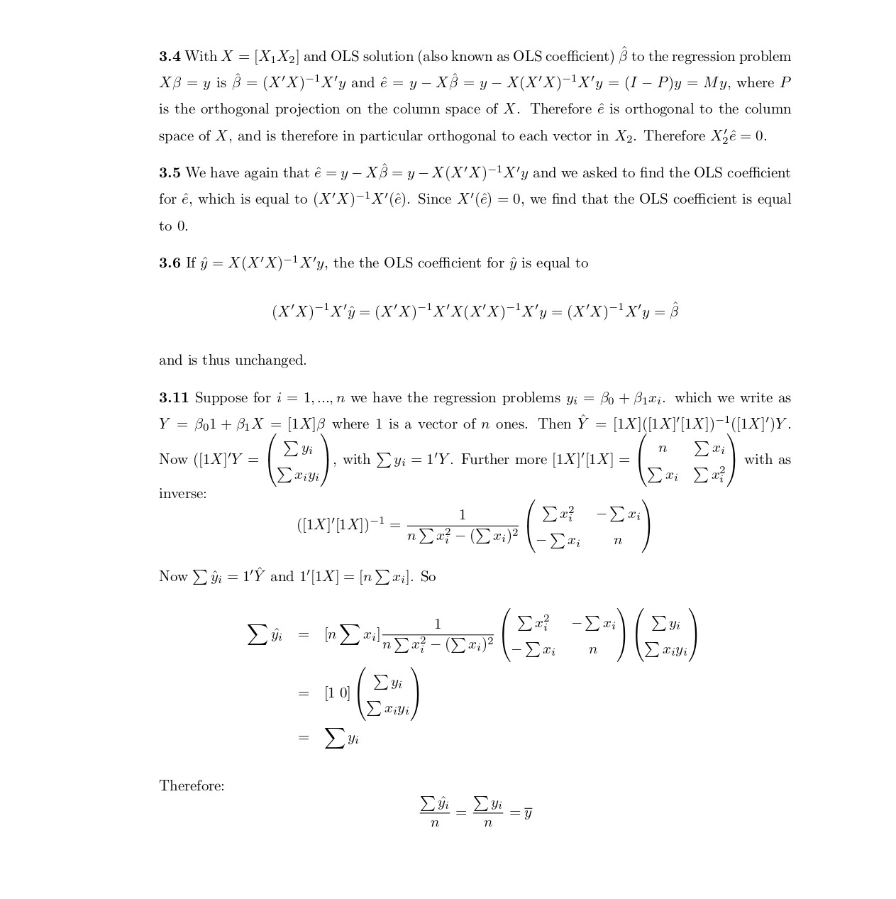 Exercise 3.4 Let e be the OLS residual from a regression of y on X=...