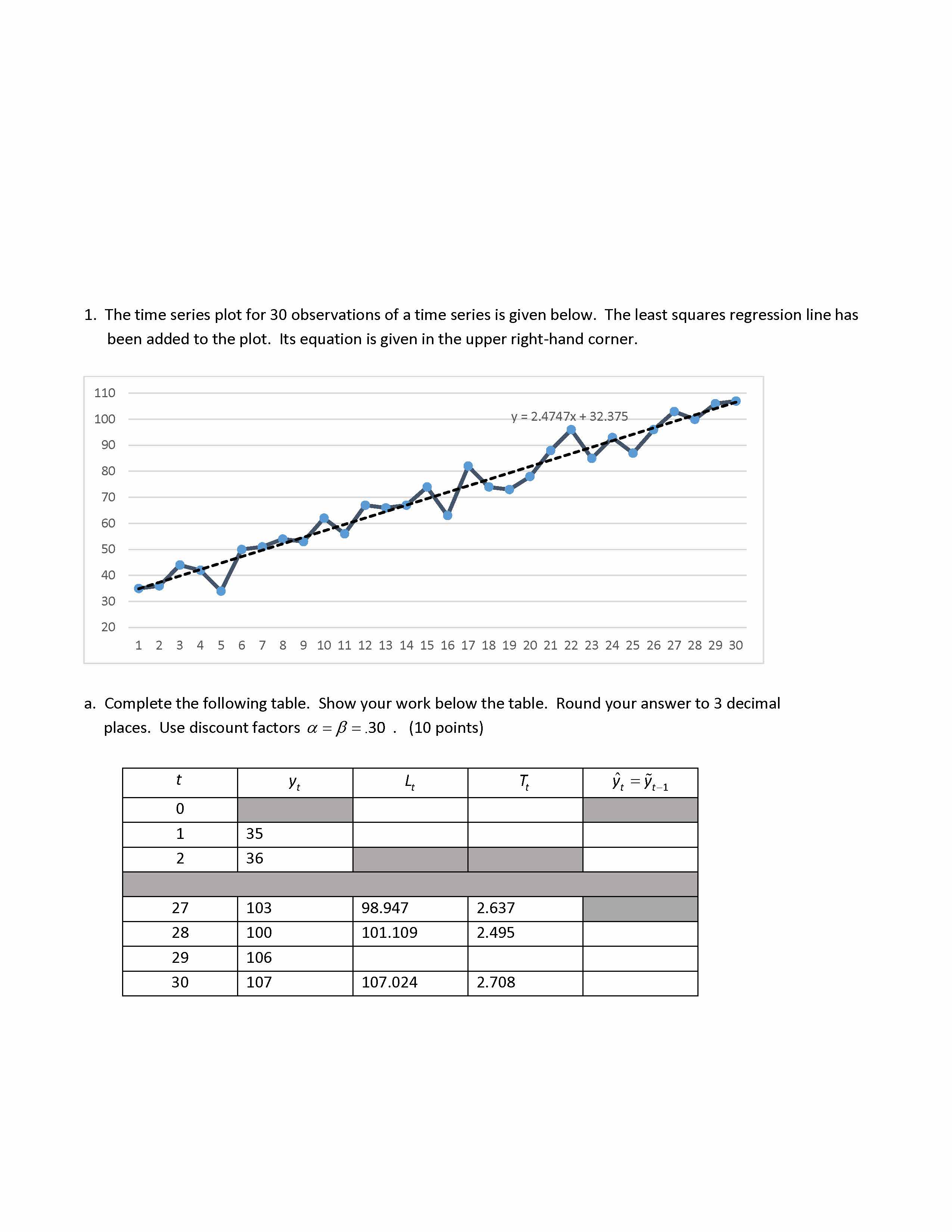 1. The time series plot for 30 observations of a time series is giv...