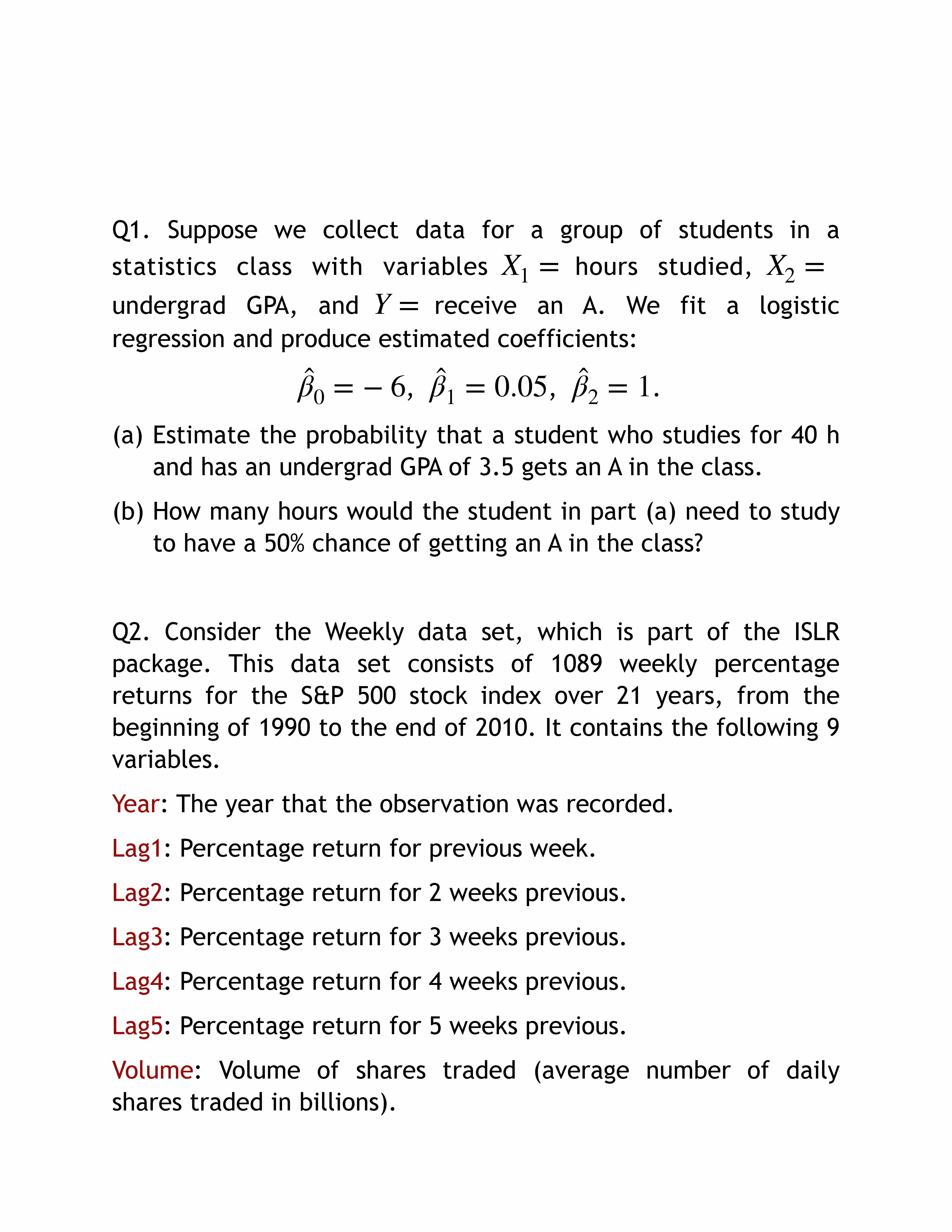 Q1. Suppose we collect data for a group of students in a statistic...
