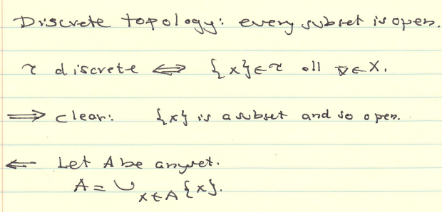 Prove that a toplogy τ on X is discrete if and only if {x} ϵ τ...