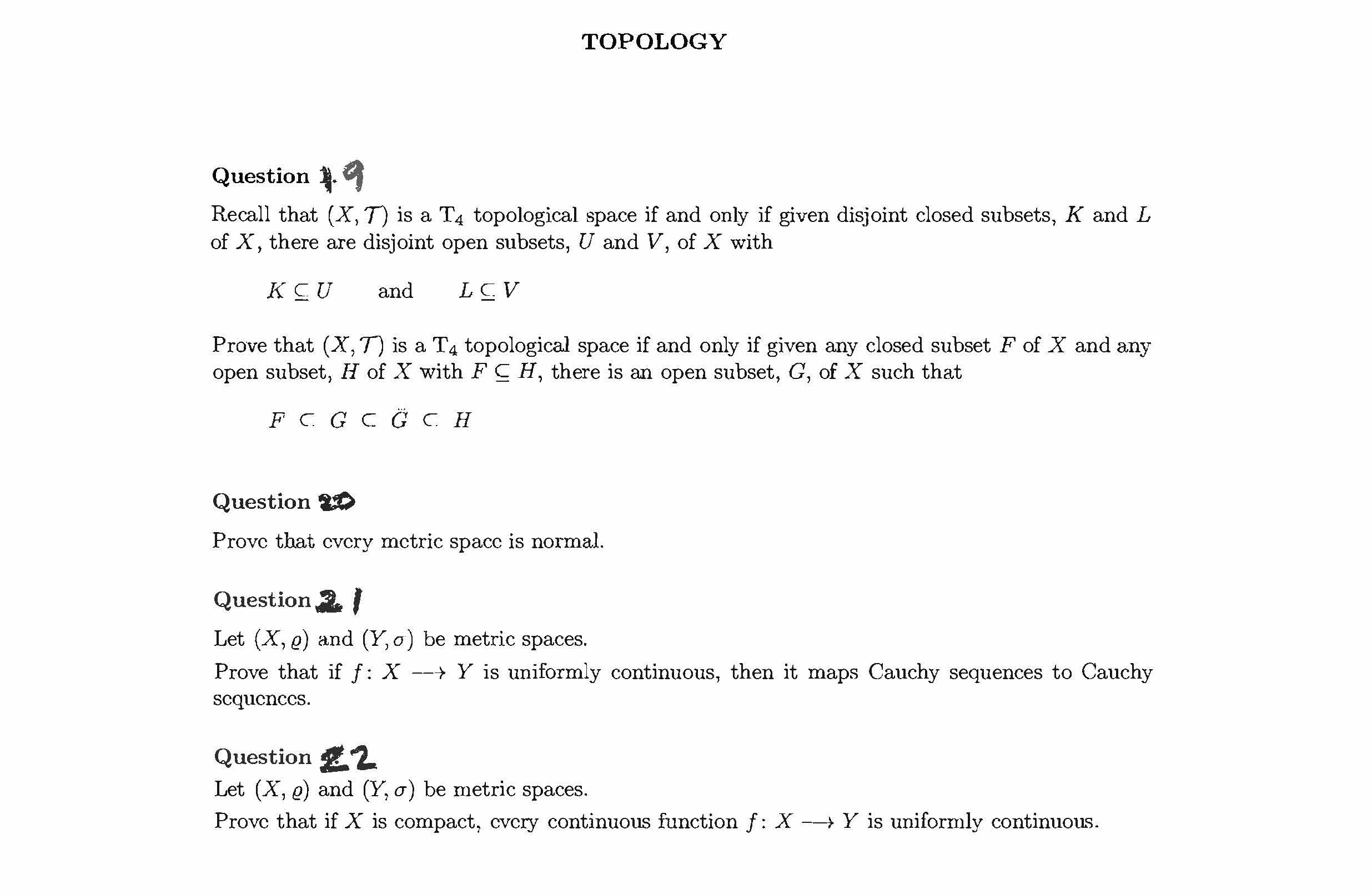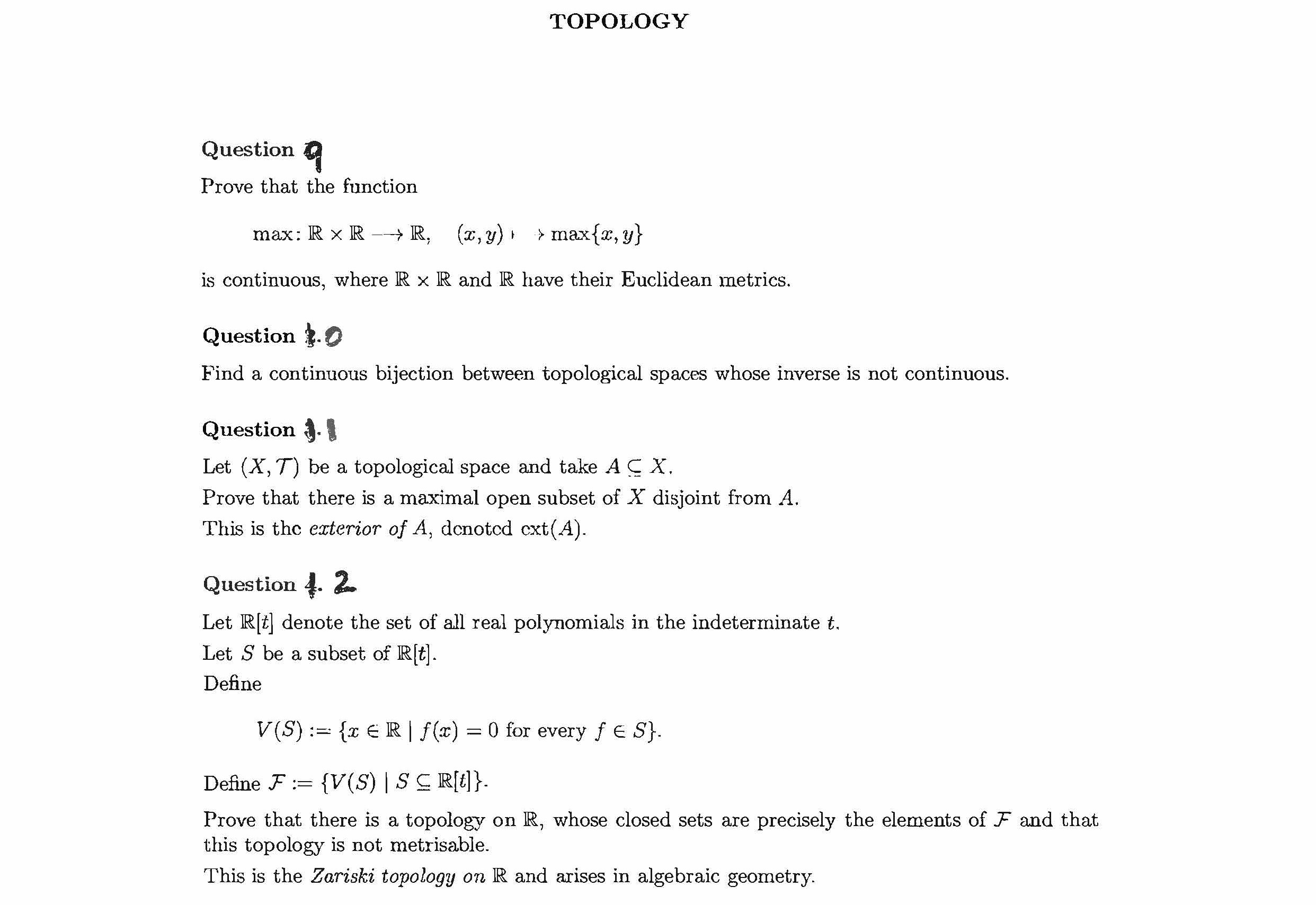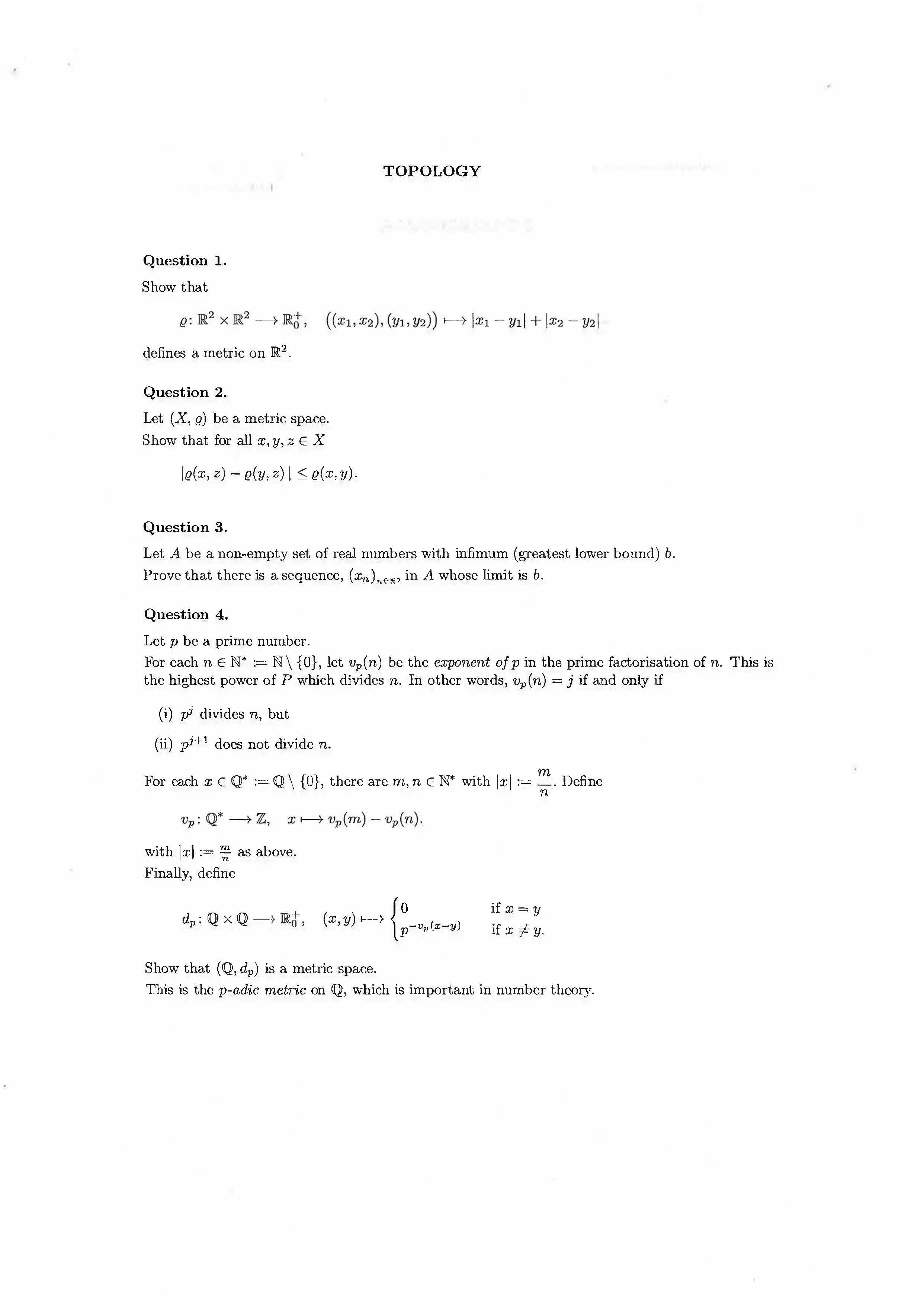 TOPOLOGY Question I. Show that defines a metric on IR2 • Que...