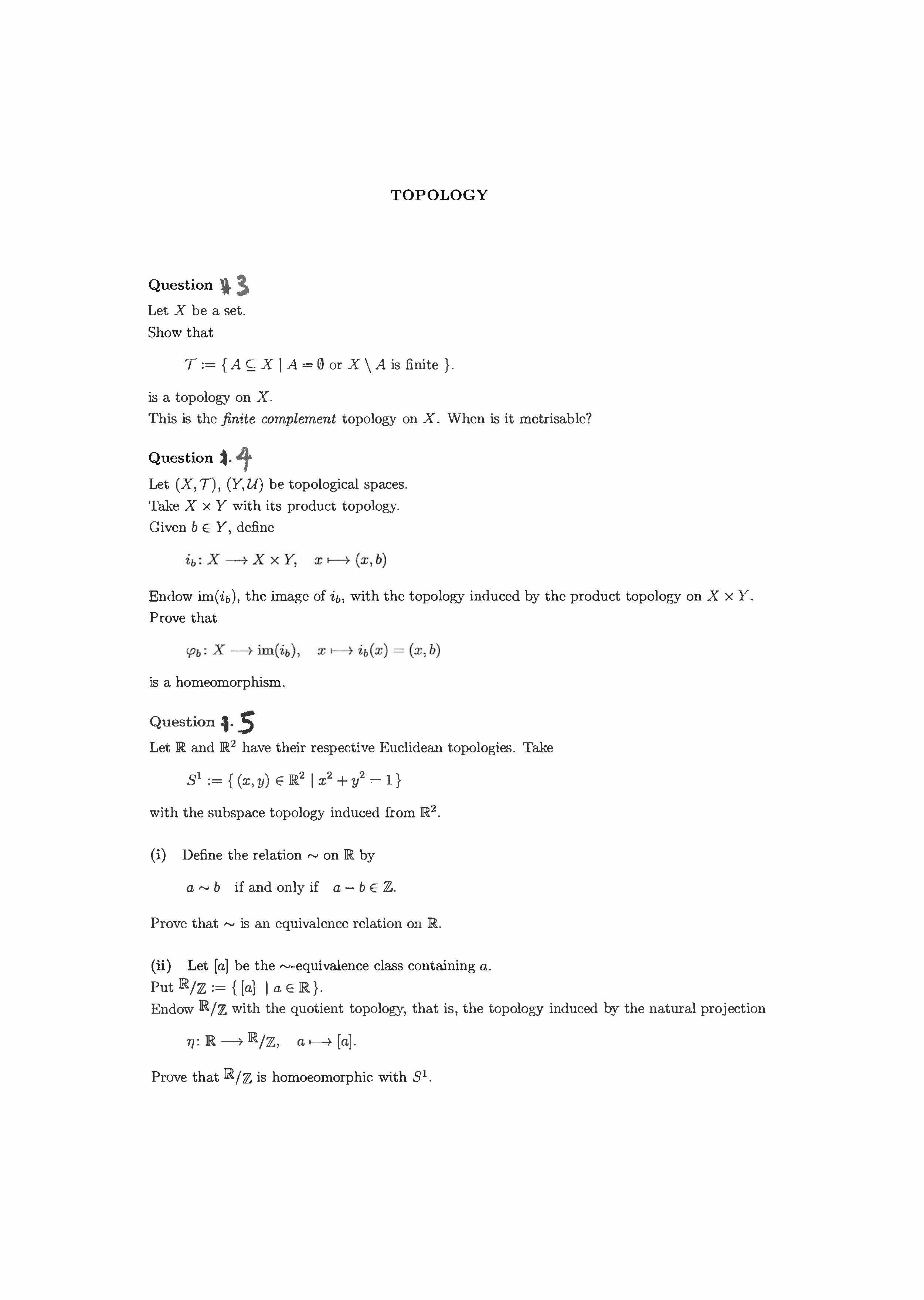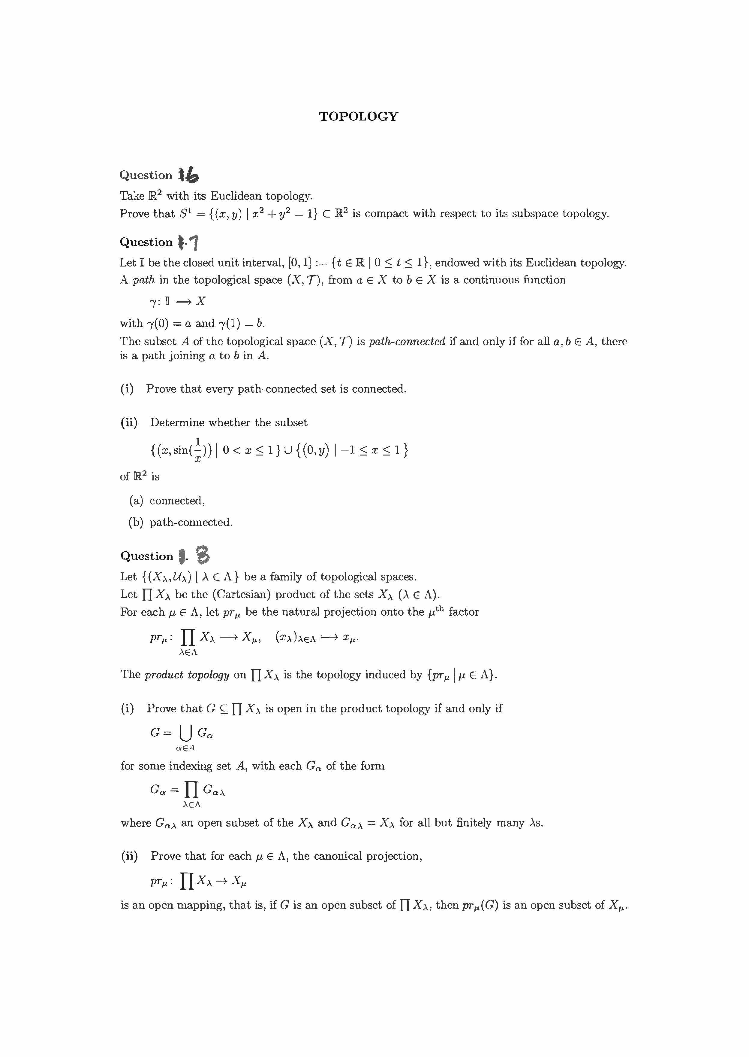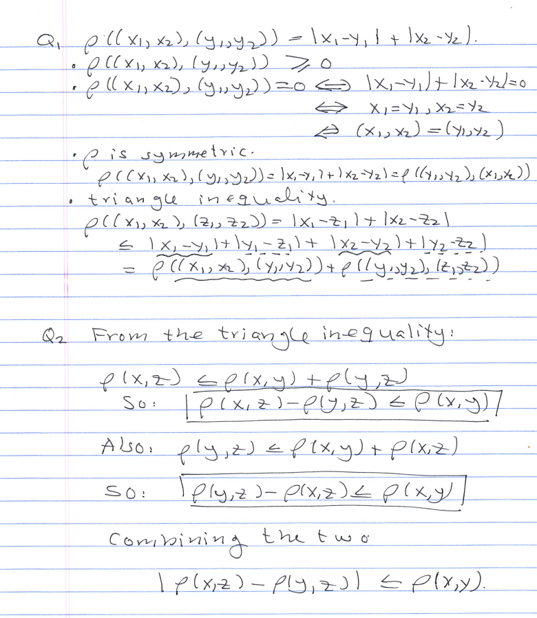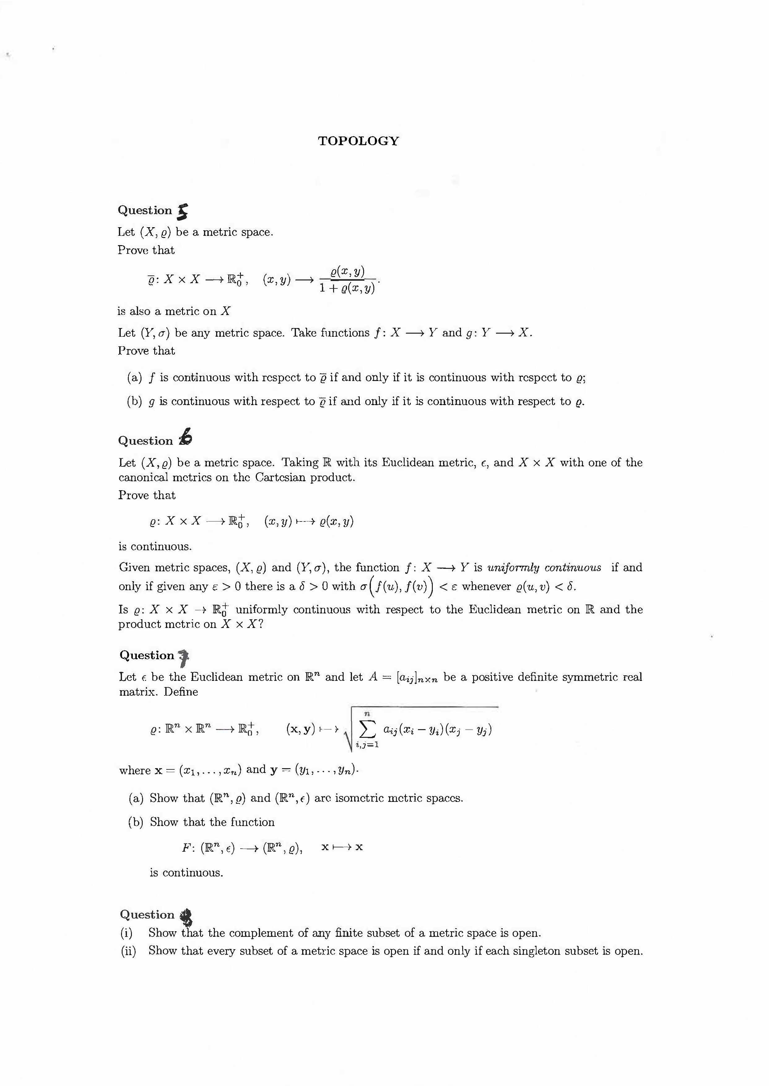 TOPOLOGY Question I. Show that defines a metric on IR2 • ...