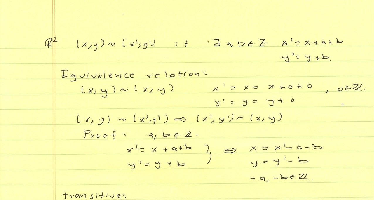 Define a relation ~ on R2 by (x,y)~ (x',y'), ~ iff 3 a,b EZ, such ...