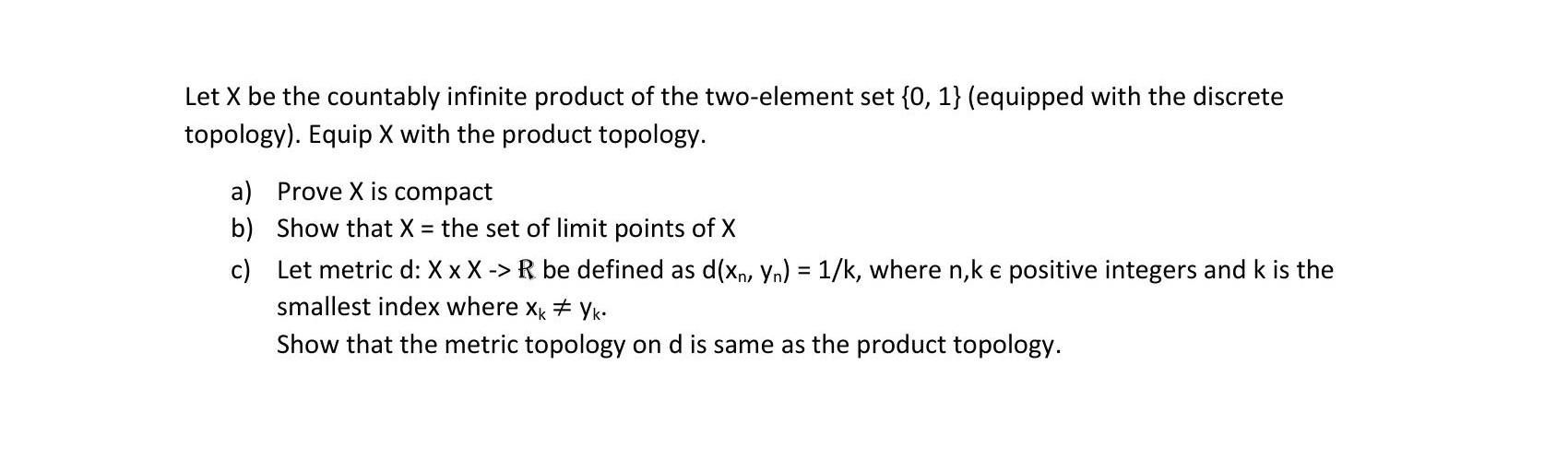 Let X be the countably infinite product of the two-element set {0, ...