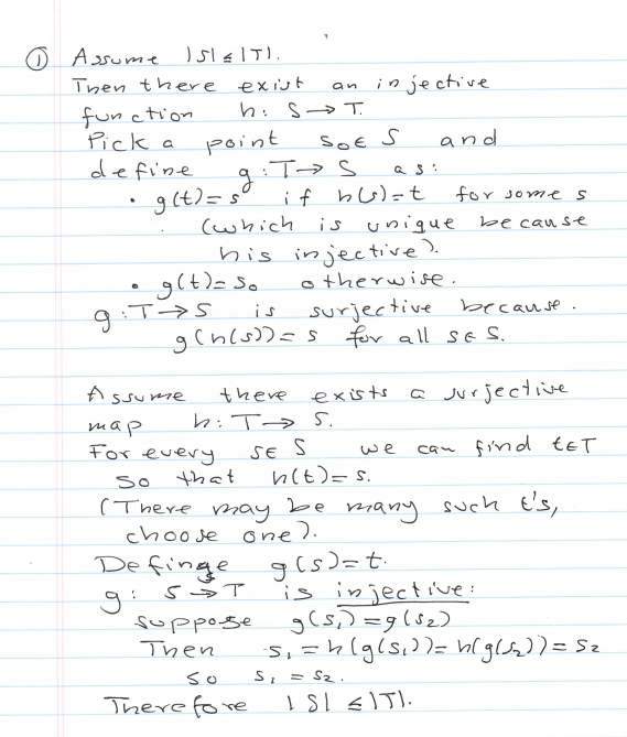Section 1.2 1. Let S and T be sets. Show that jSj jTj if and onl...