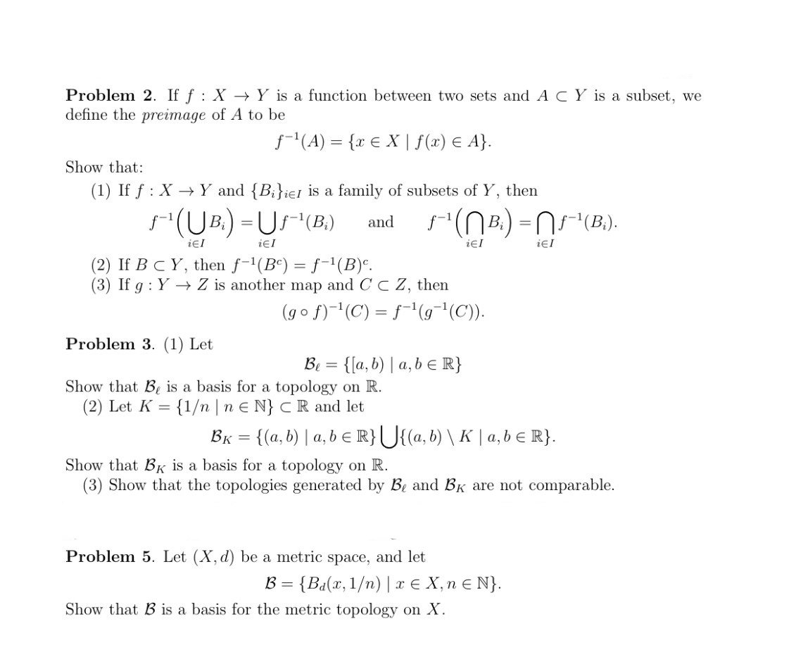 Problem 2. If f : X Y is a function between two sets and A C Y is ...