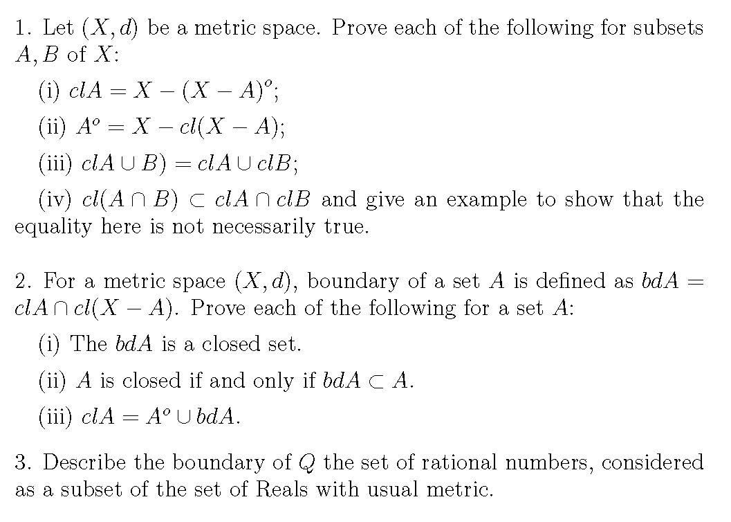 1. Let (X; d) be a metric space. Prove each of the following for su...