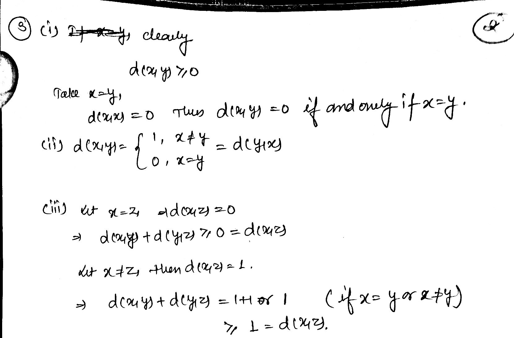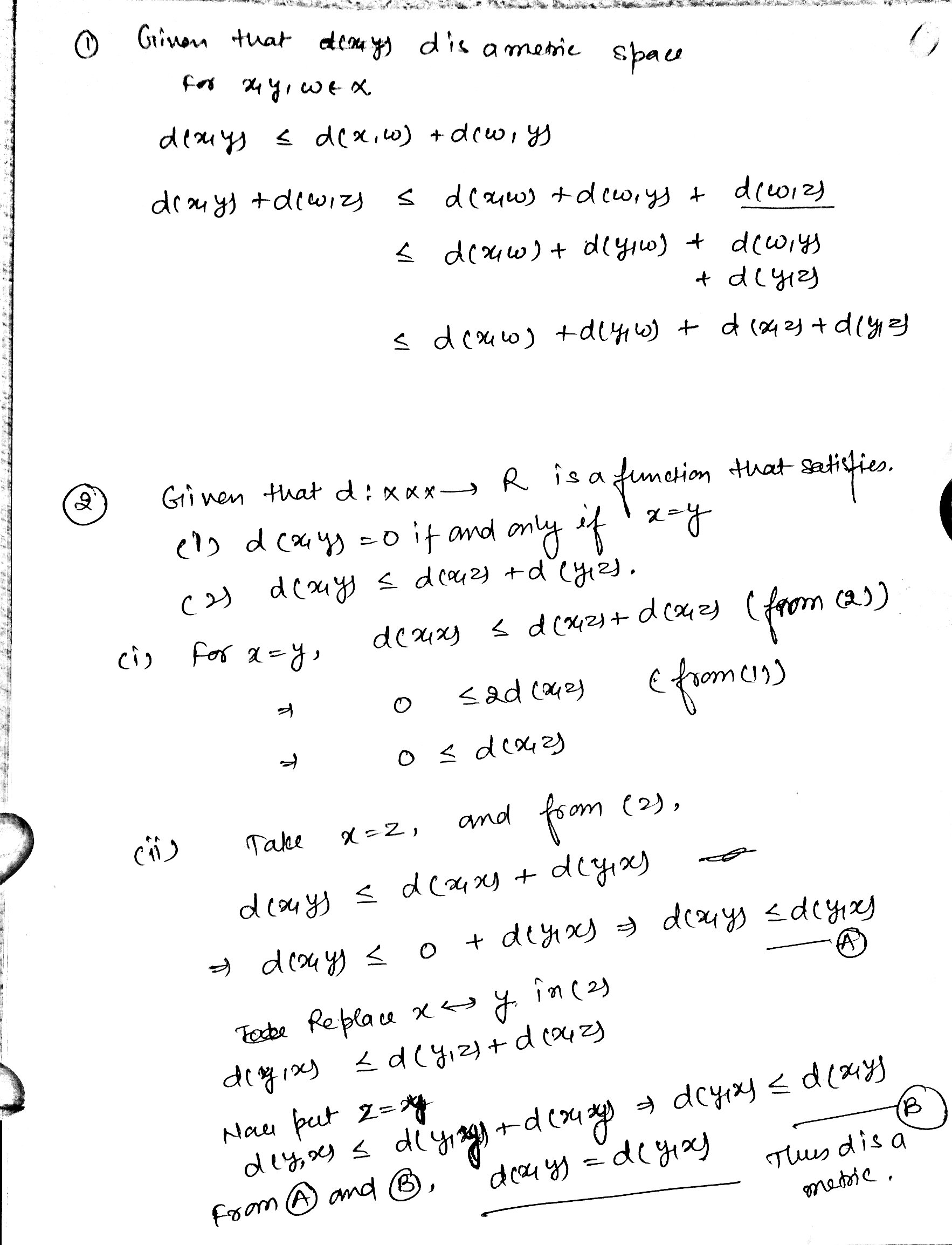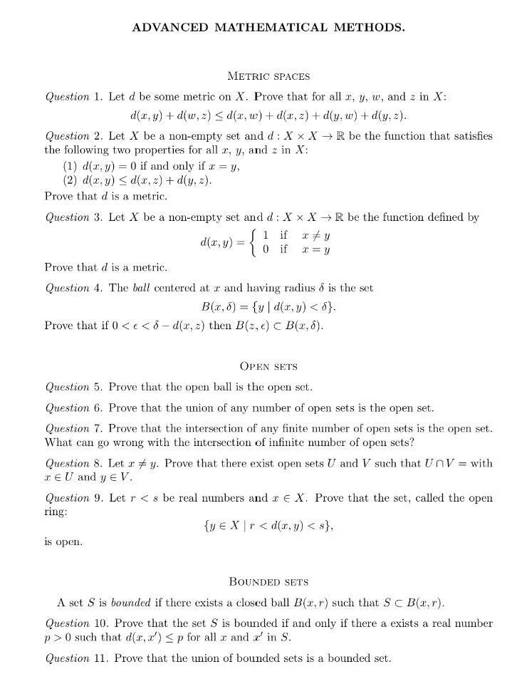 . ADVANCED MATHEMATICAL METHODS. METRIC SPACES Question 1. Let d...