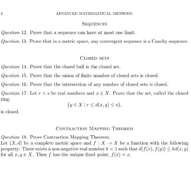 . ADVANCED MATHEMATICAL METHODS. METRIC SPACES Question 1. Let d ...