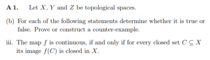 A: 1. Let X, Y and Z be topological spaces. (b) For each of the f...