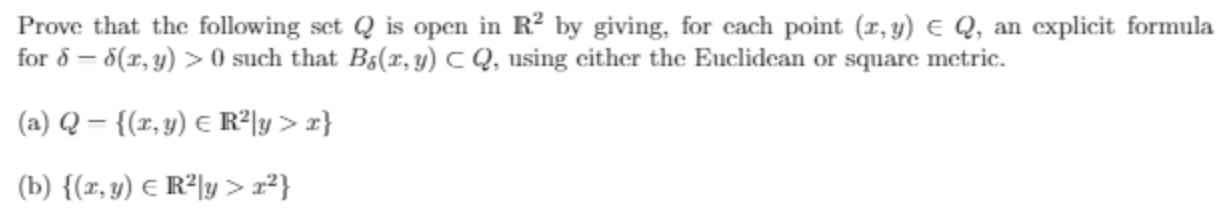 Prove that the following set Q is open in R² by giving,...