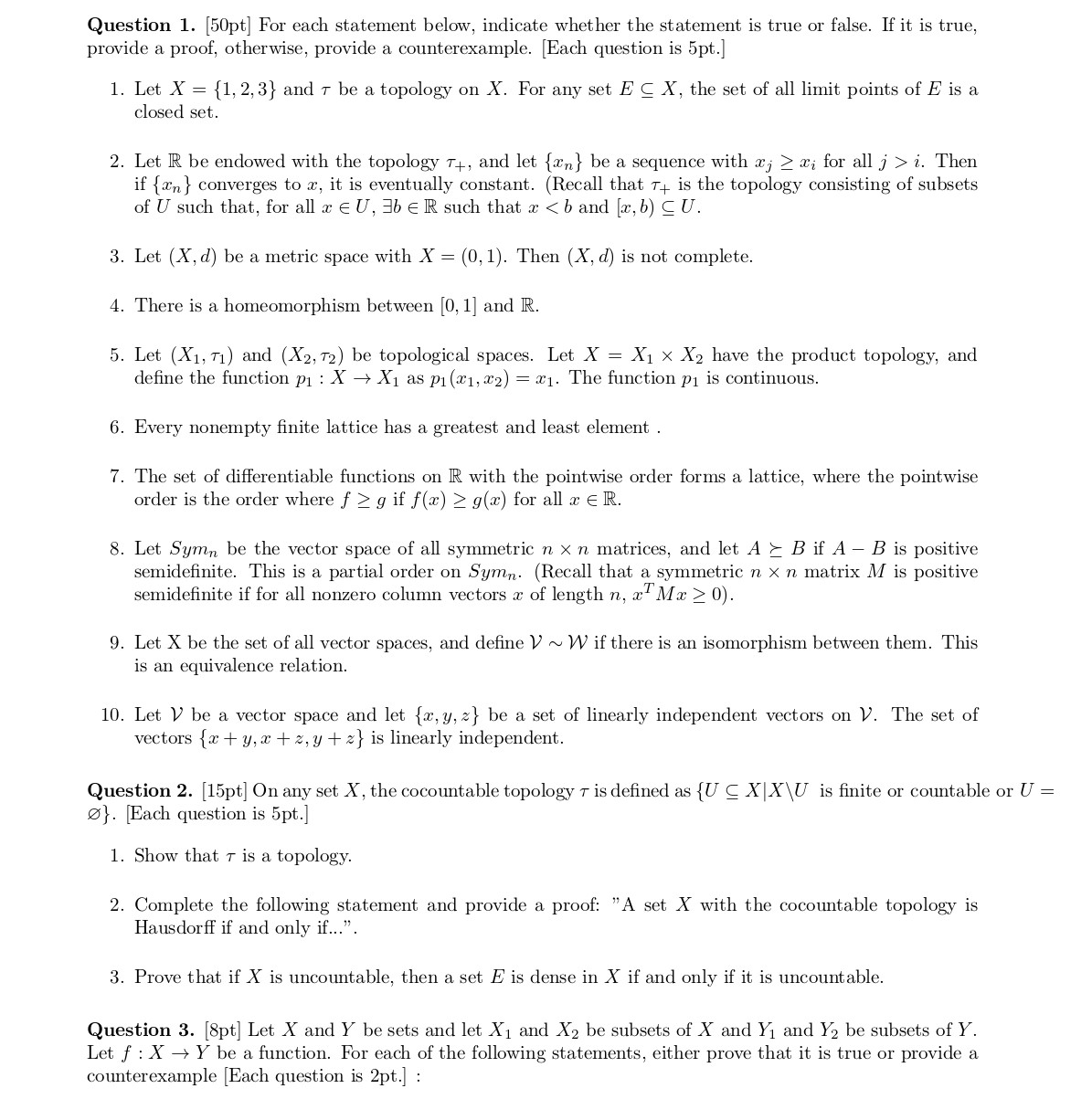 Question 1. [50pt] For each statement below, indicate whether the s...