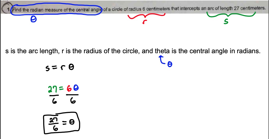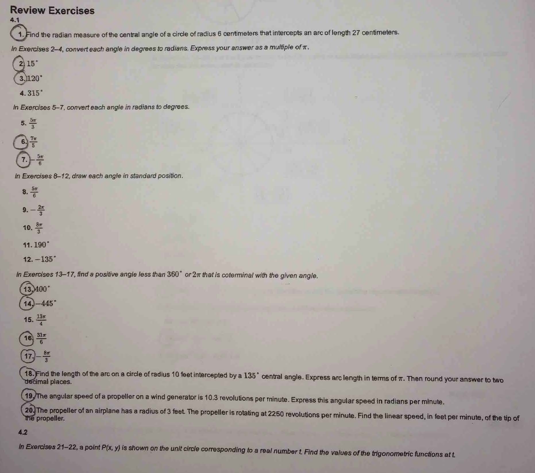 Review Exercises 4.1 1. Find the radian measure of the central an...