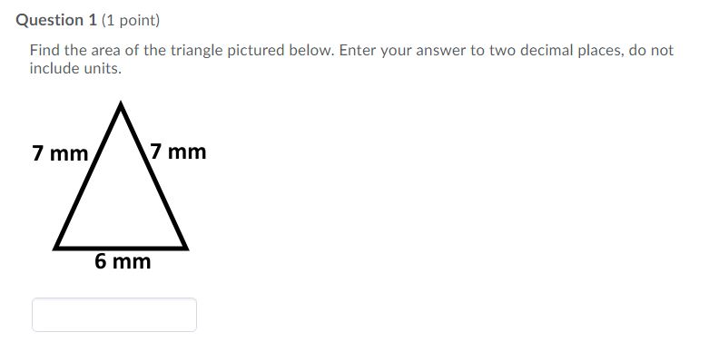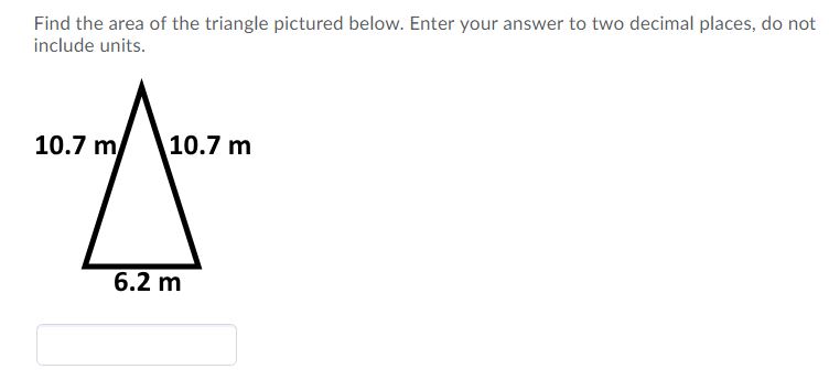 Find the area of the triangle pictured below. Enter your answer to...