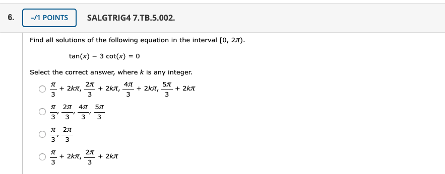 6. -/1 POINTS SALGTRIG4 7.TB.5.002. Find all solutions of the fo...