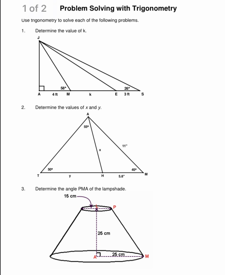 1 of 2 Problem Solving with Trigonometry Use trigonometry to solv...
