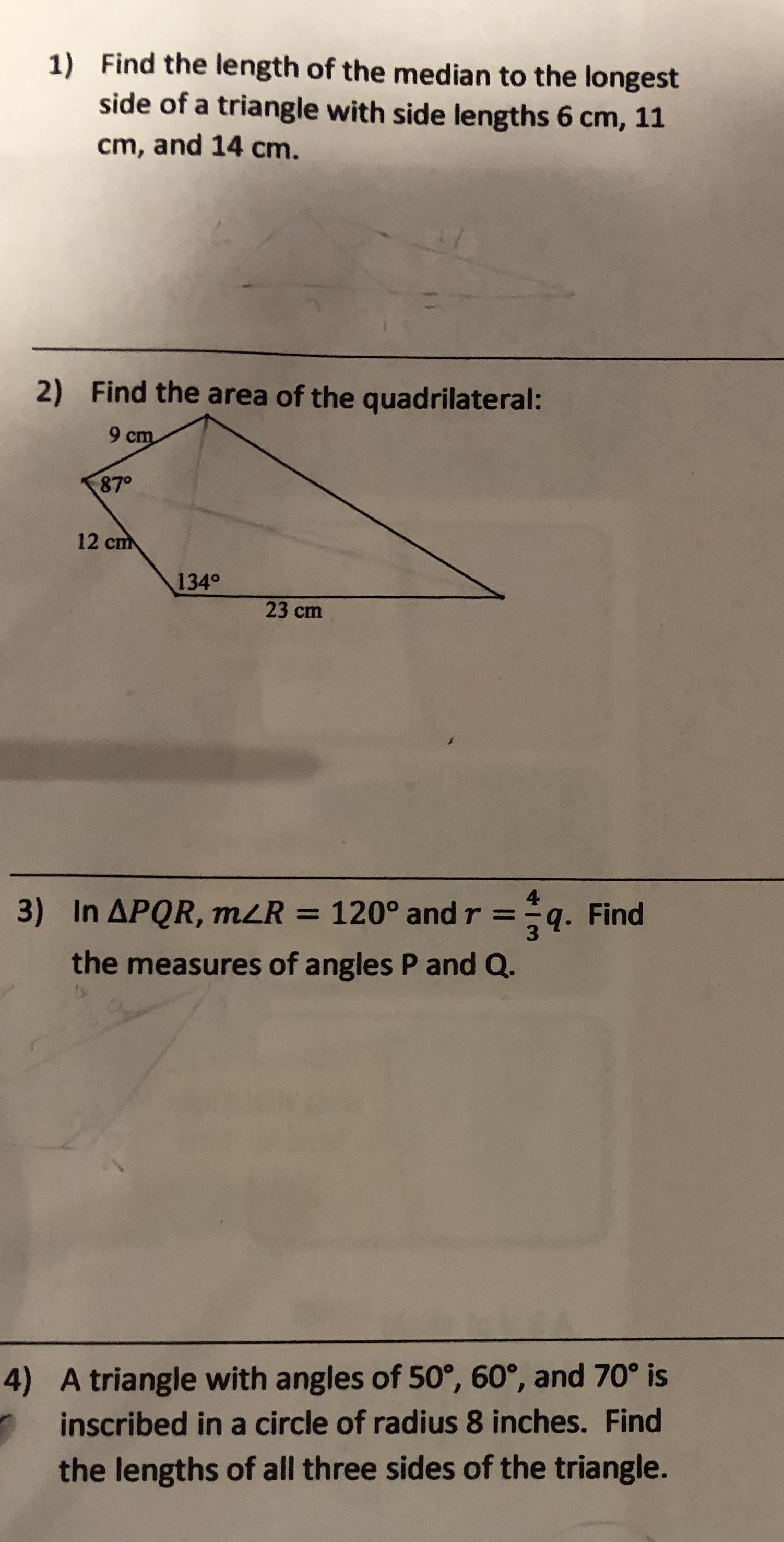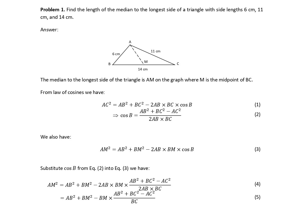 1) Find the length of the median to the longest side of a triangle...