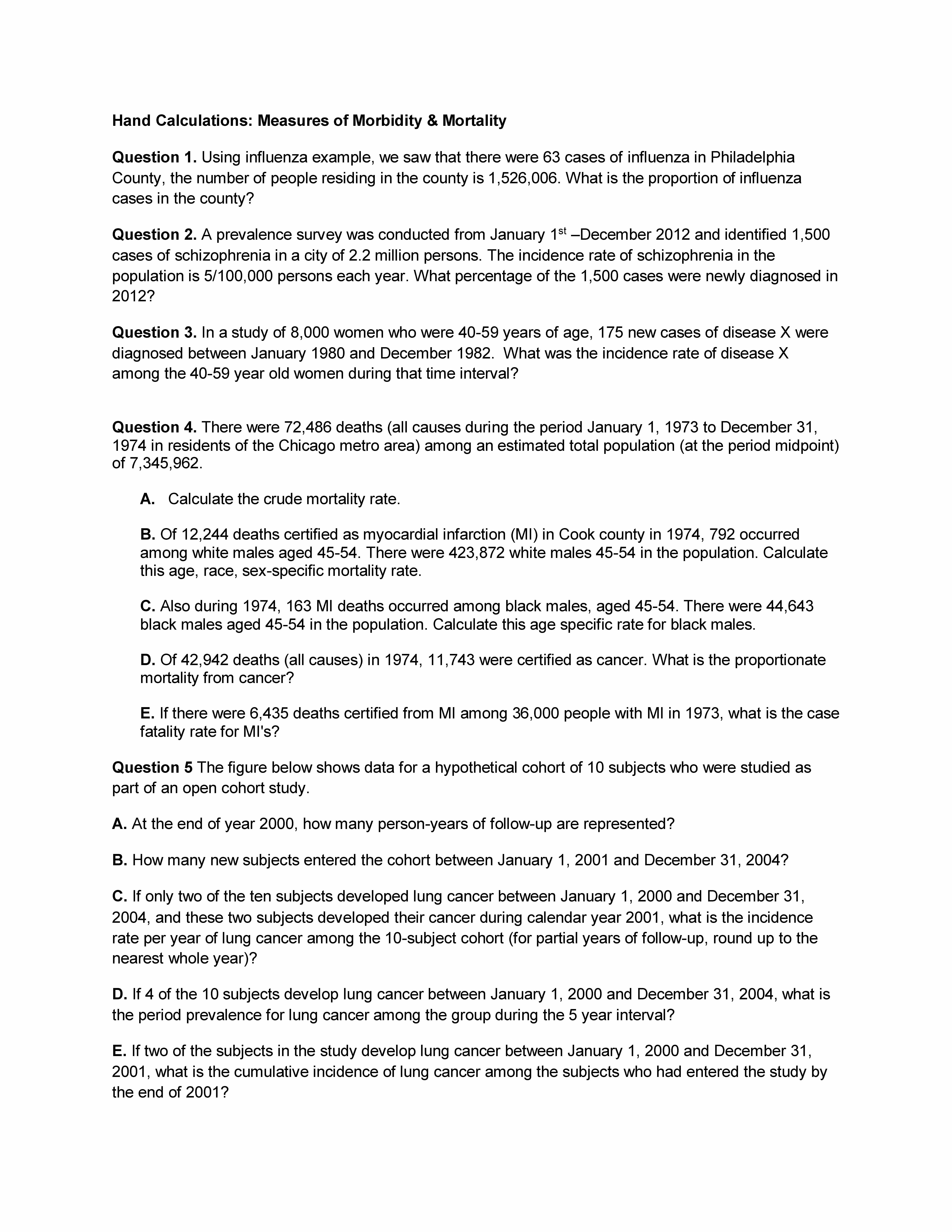 Hand Calculations: Measures of Morbidity & Mortality Question ...