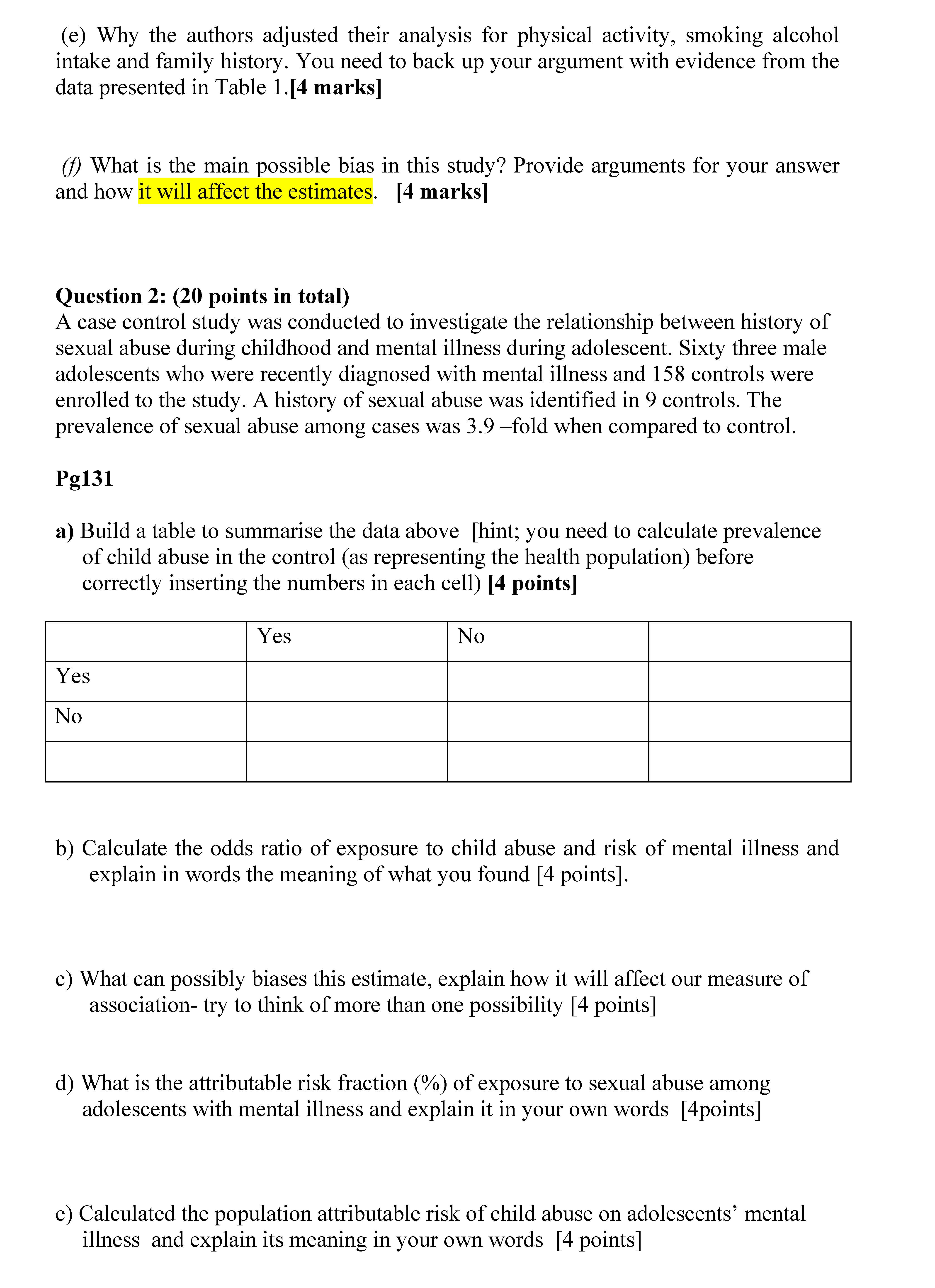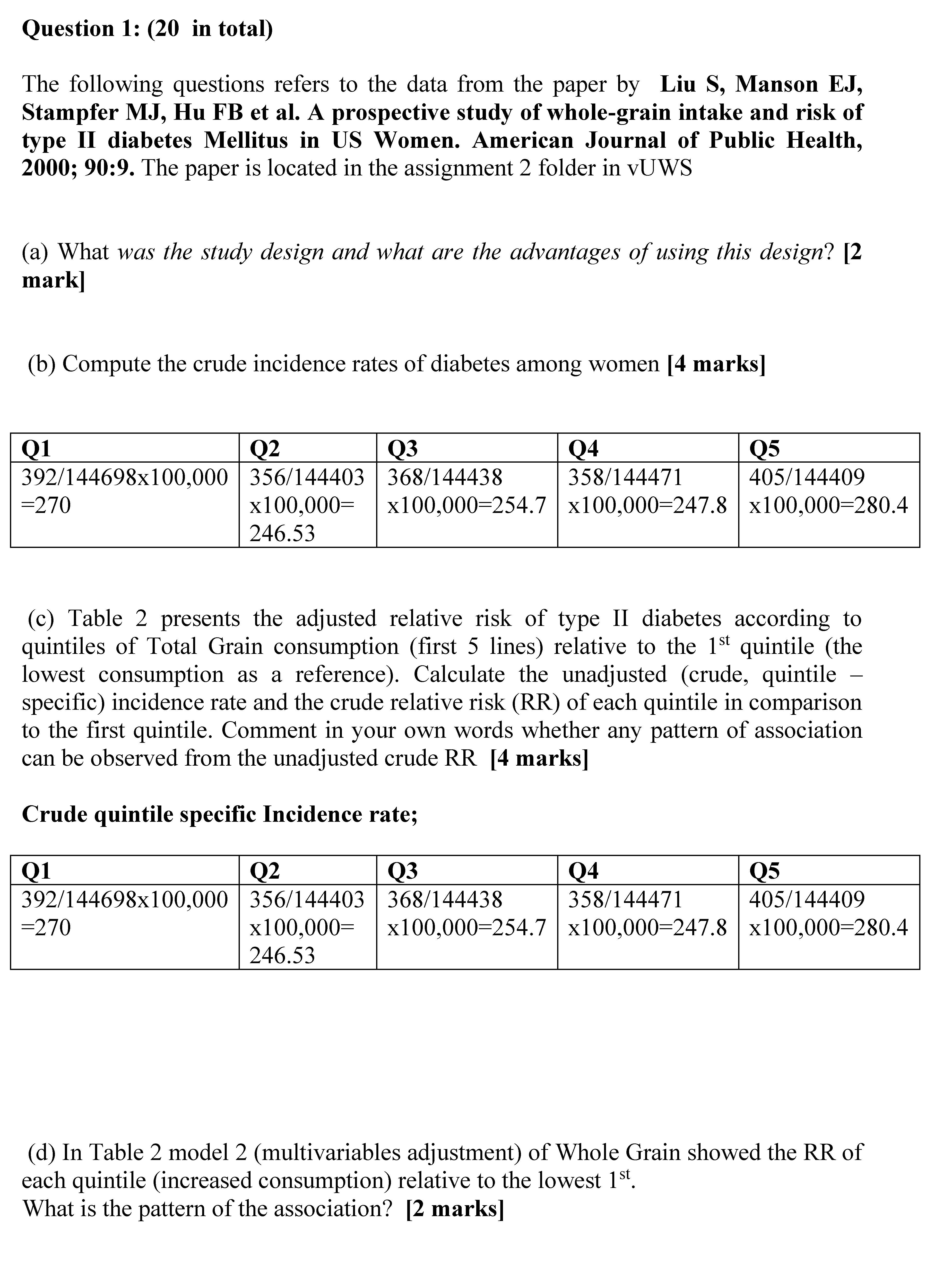 Question 1: (20 in total) The following questions refers to the d...