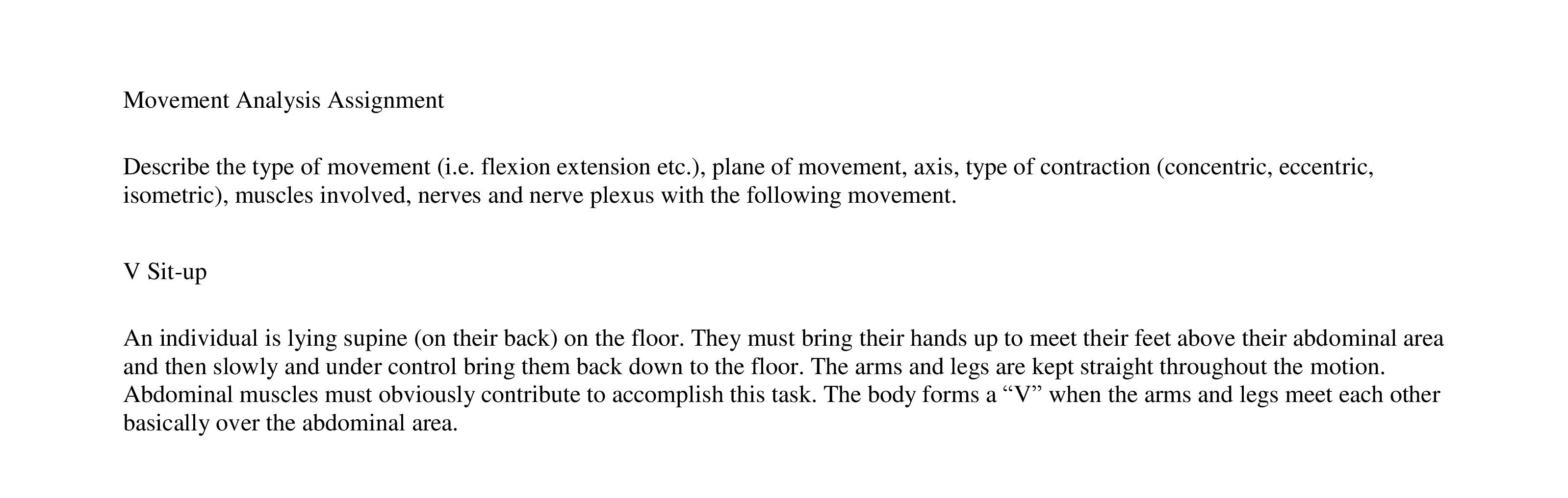 Movement Analysis Assignment Describe the type of movement (i.e. f...